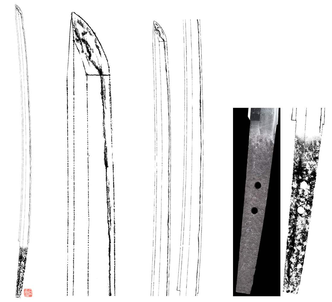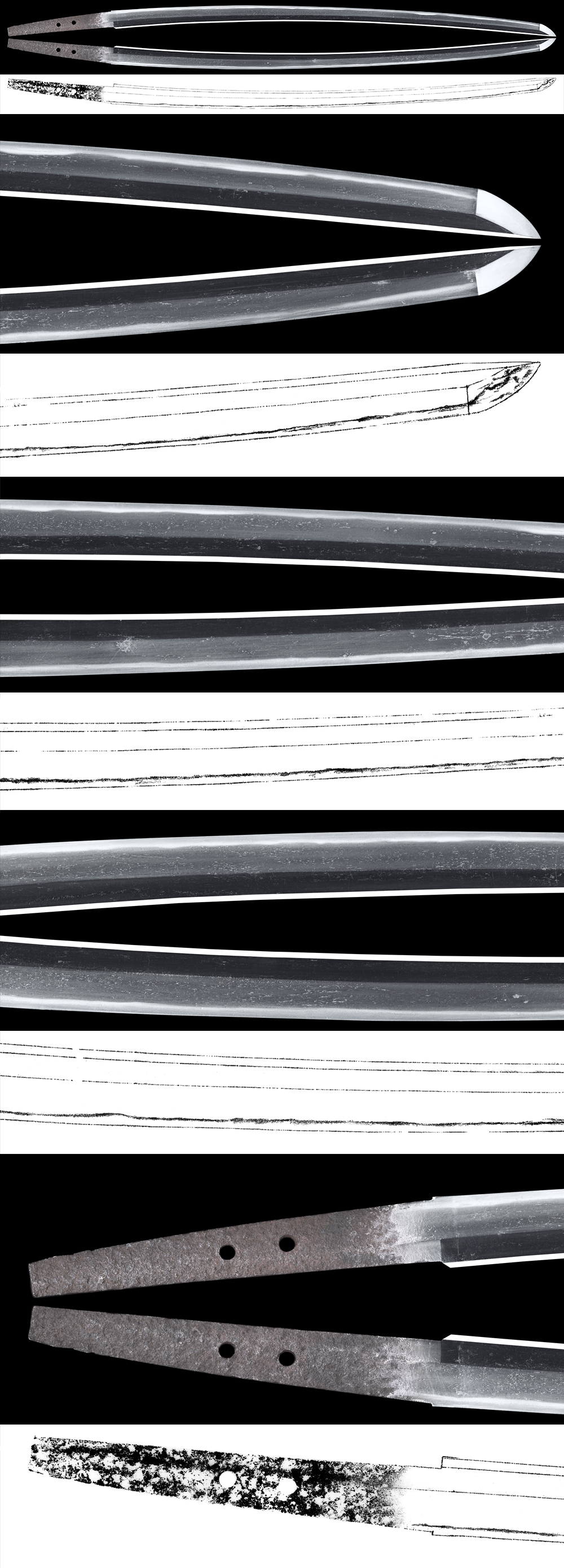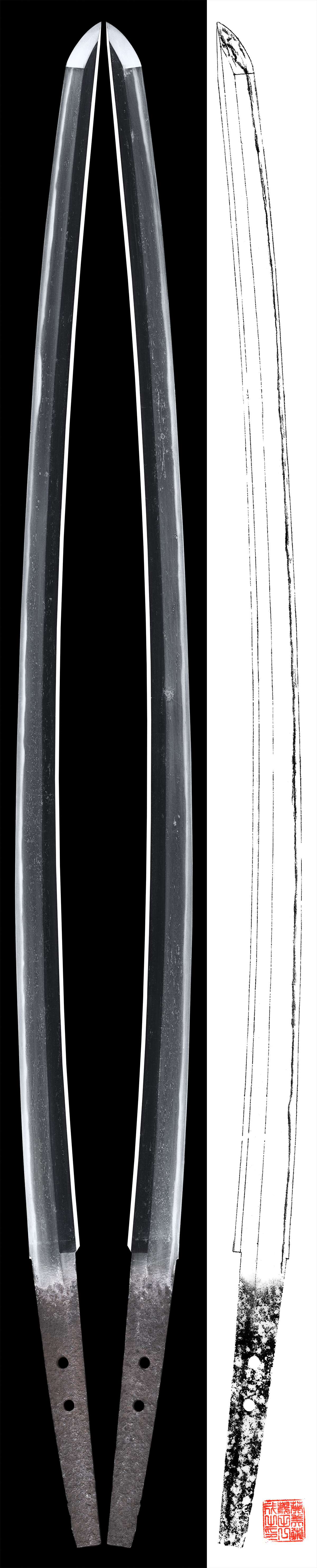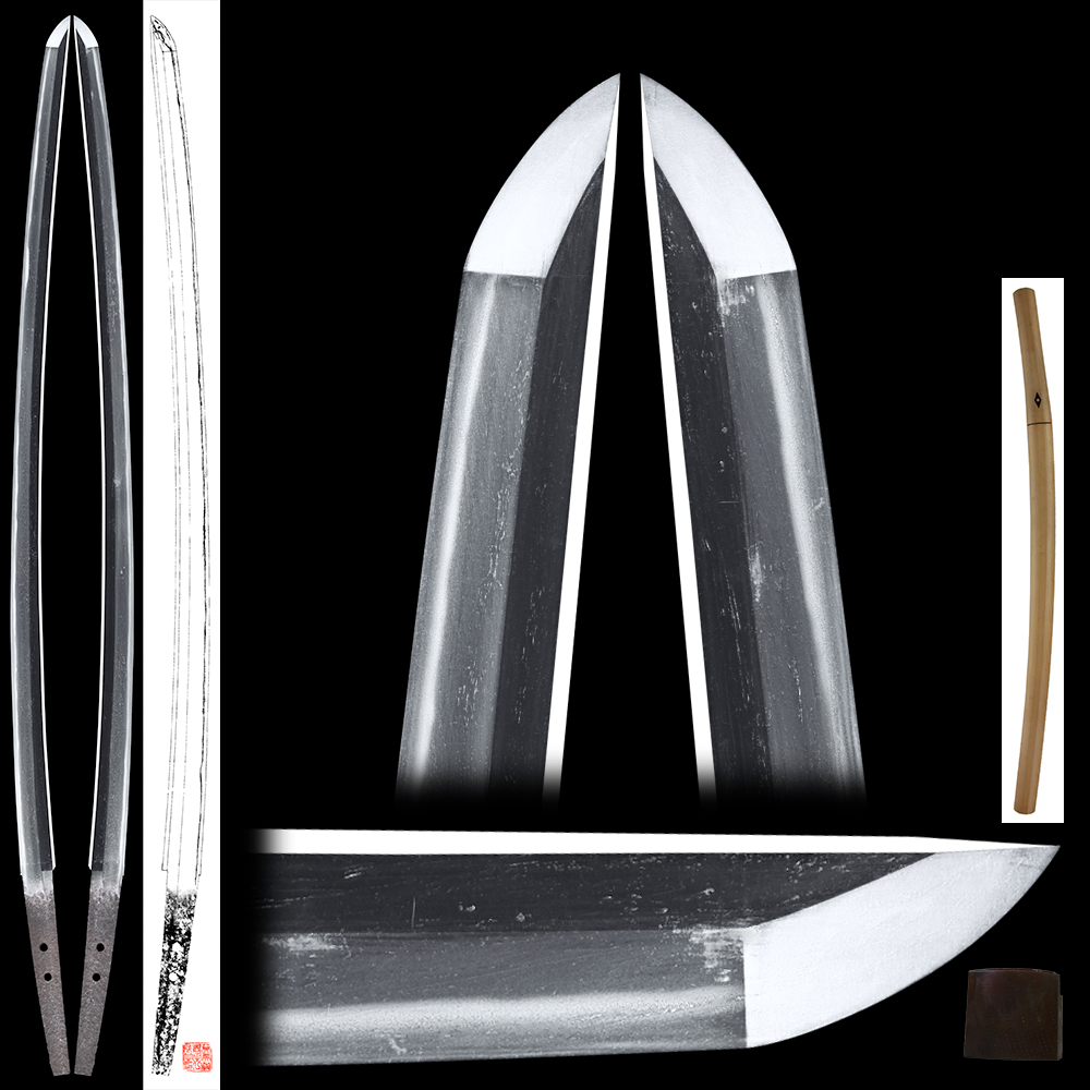 Shape : The blade is oosuriage mumei(cut shortened) slender with deep sori elegant shape.