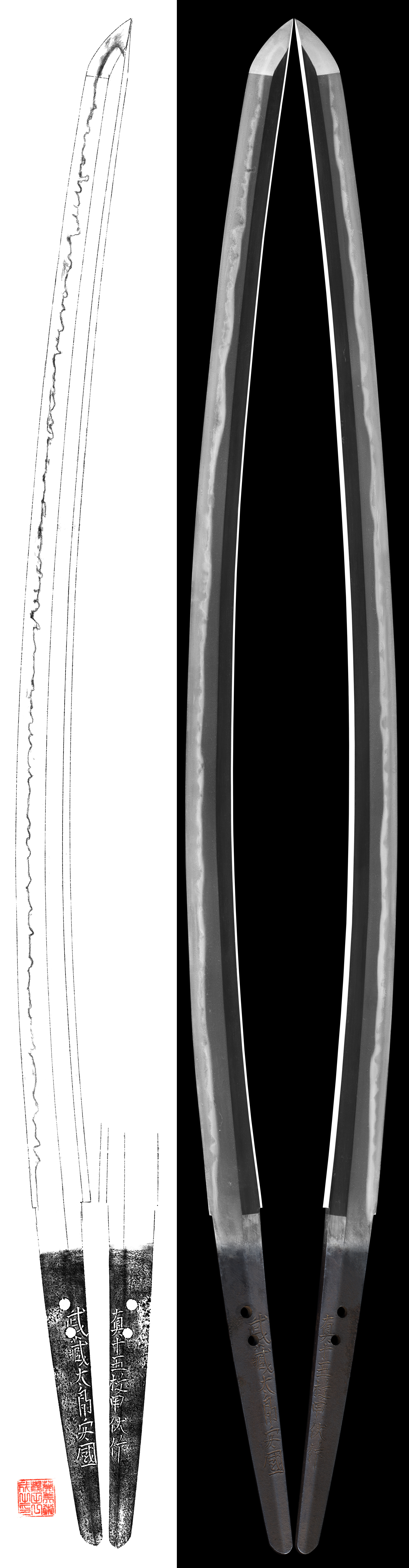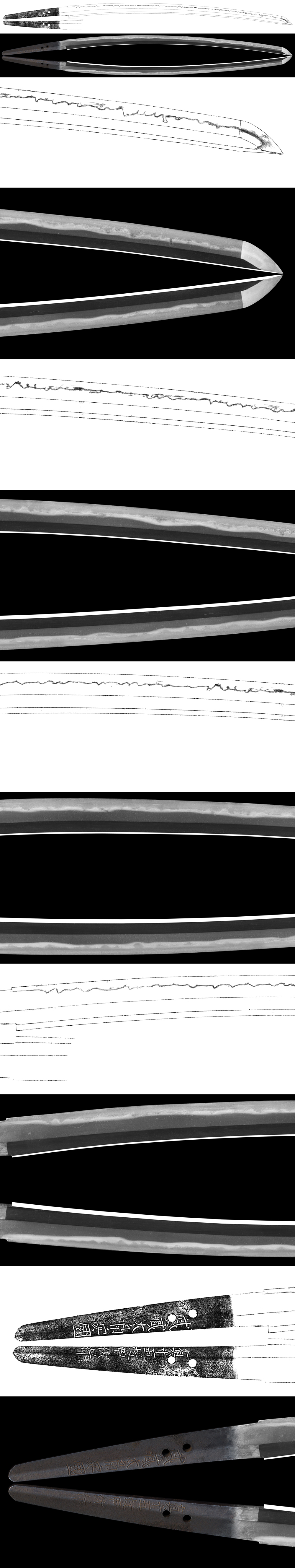 Hamon : Niedeki gunome midair and kogunome midair mixed with sunagashi and small kinsuji work.