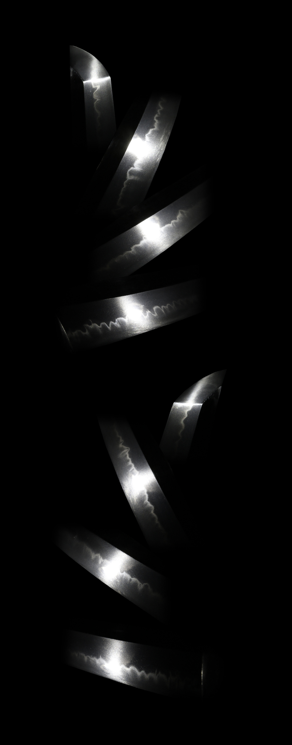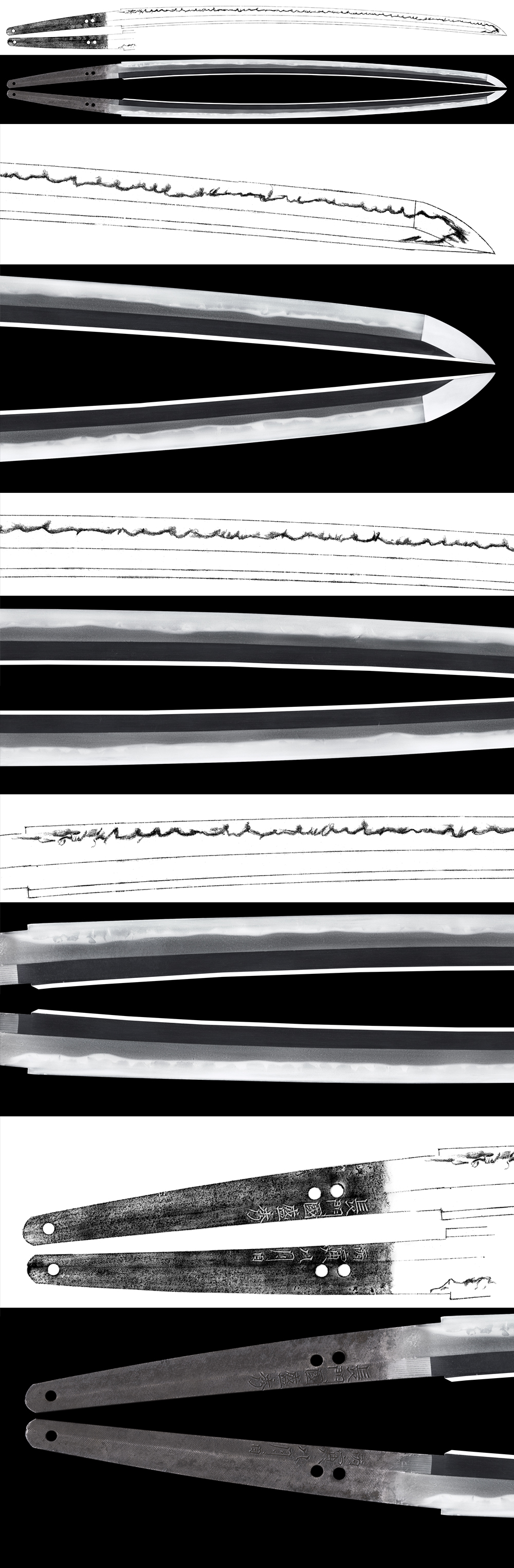 Hamon : Nie Deki Gunome Midare. In Ha, there are many Ashi.