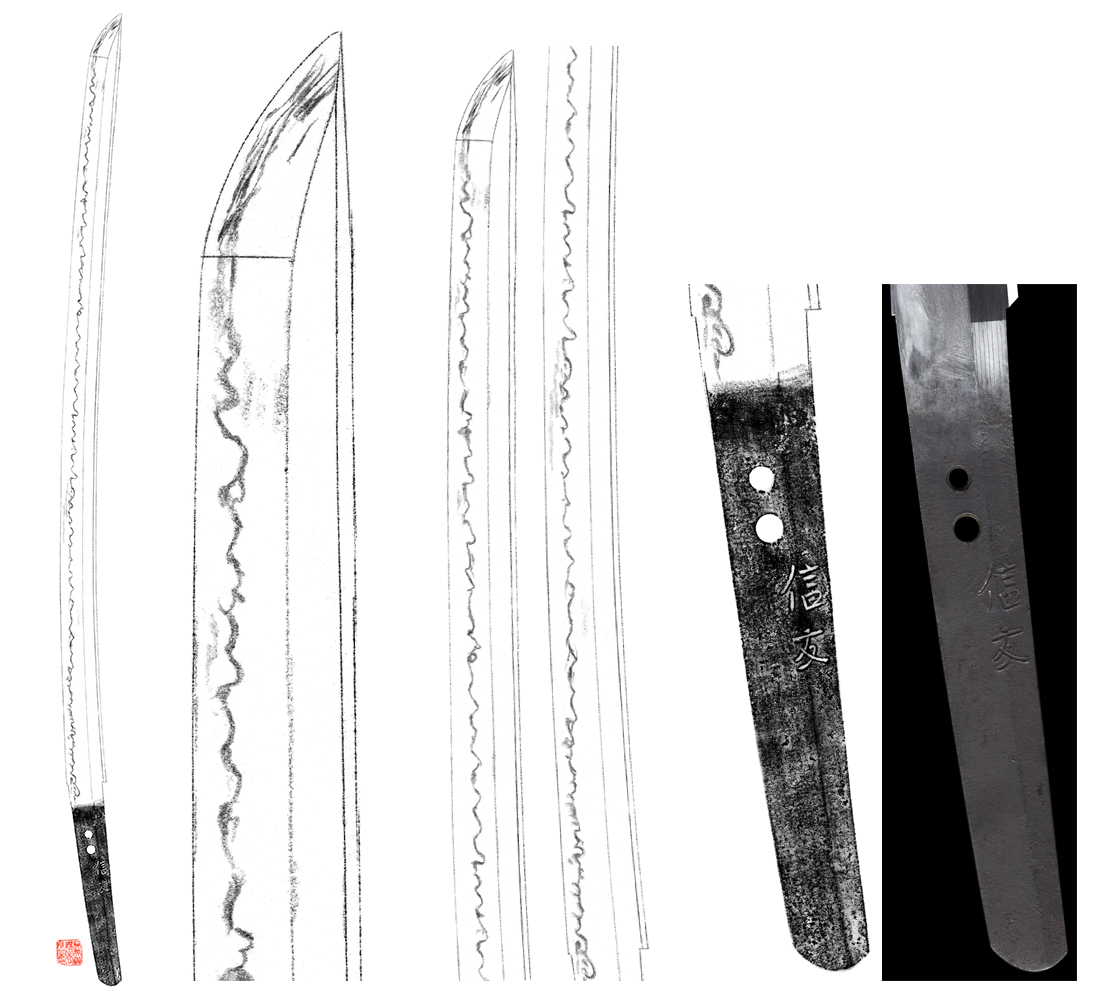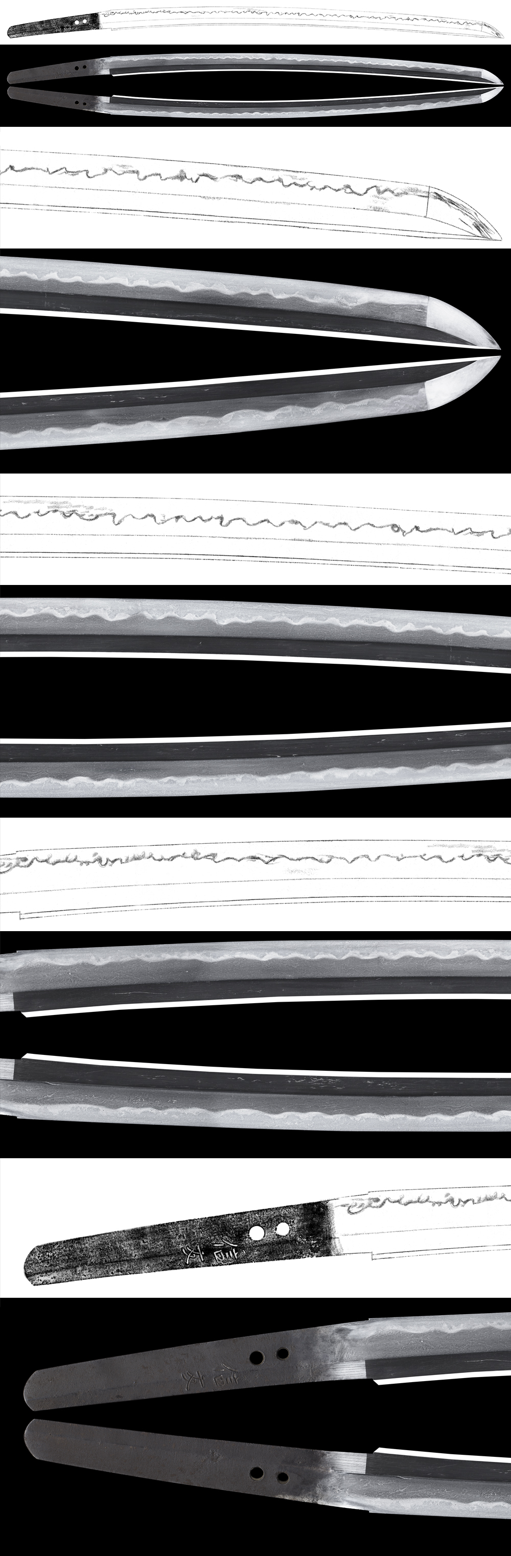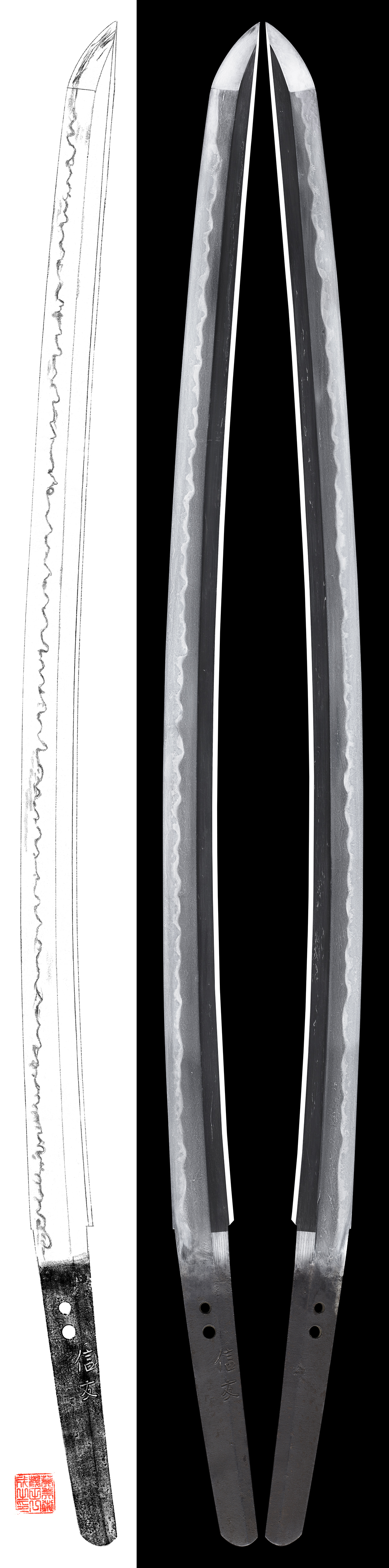 Hamon : Nie deki Gunome Midare and Tokari Gunome mixed.