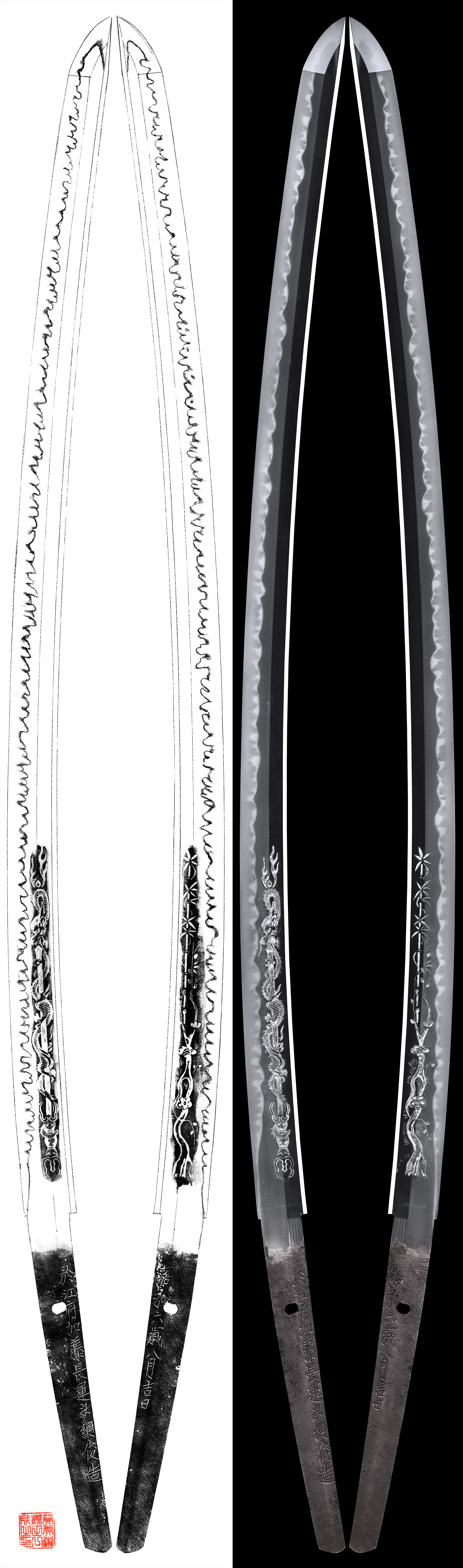 The dragon and plum blossom are engraved on the blade.