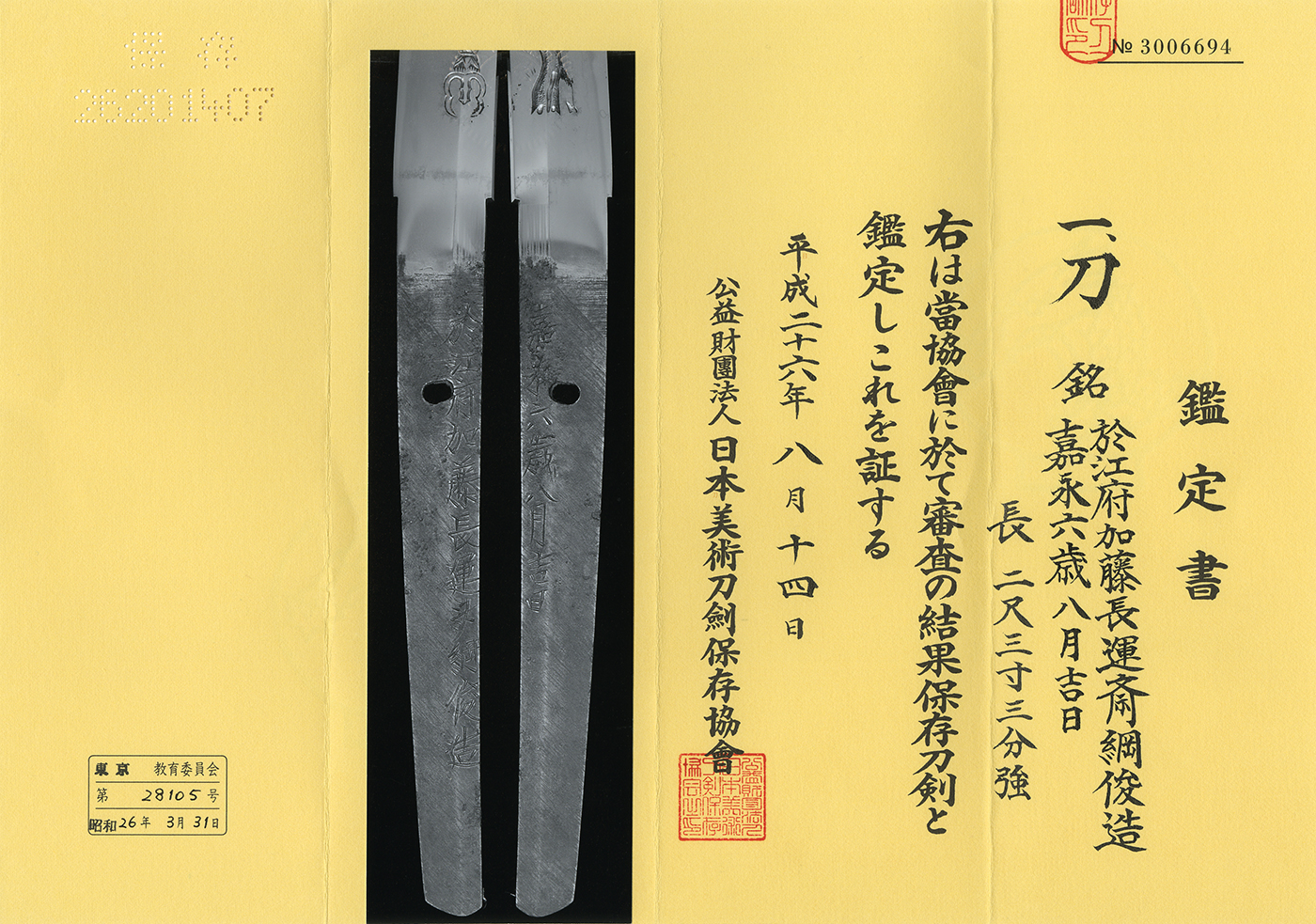 Jyo saku and regular saki)This sword belongs to Jyo saku ranking.