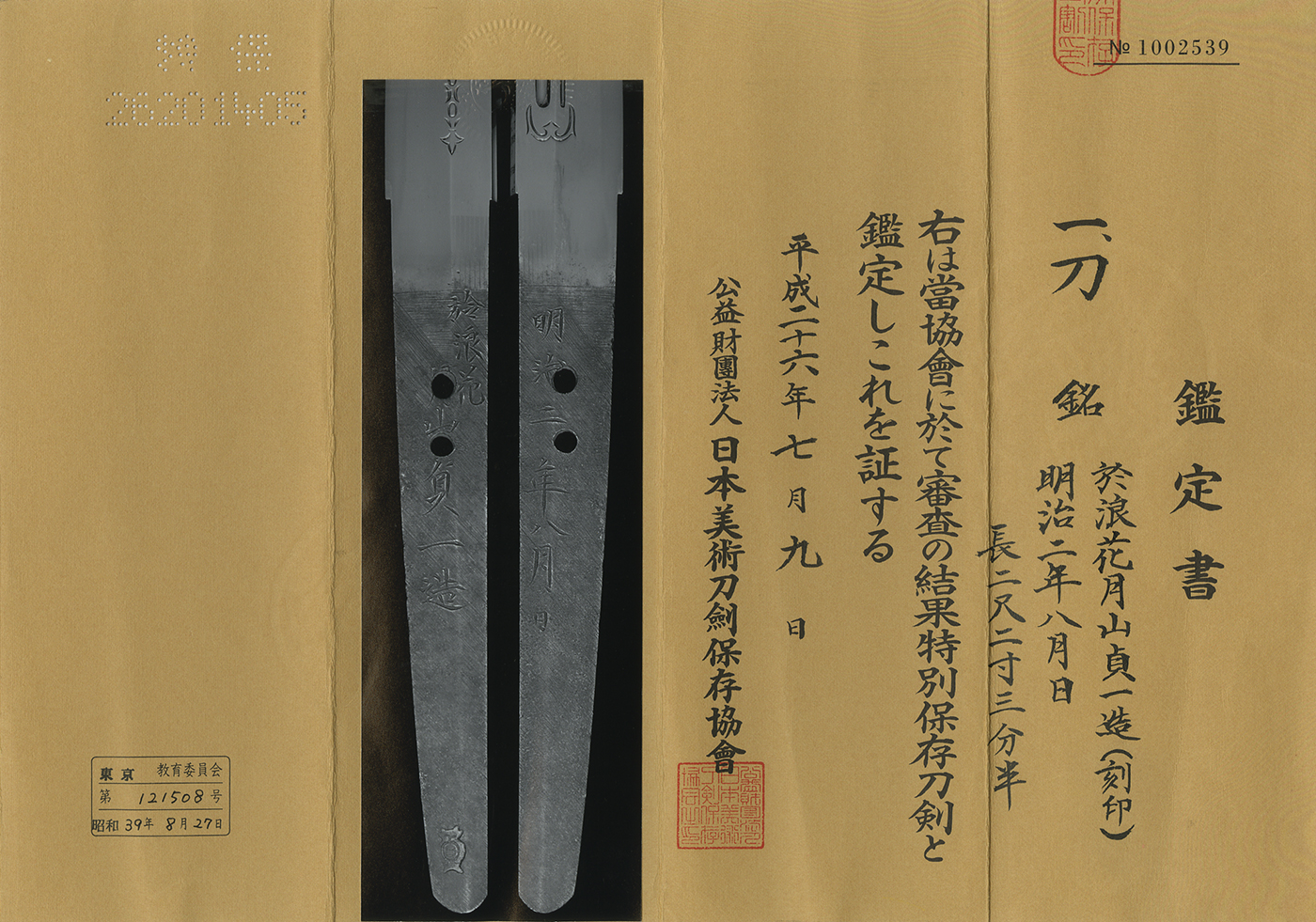 Katana : Oite Naniwa Gassan Sadaichi Zo Kokuin/Meiji 2 Nen 8 Gatsuhi