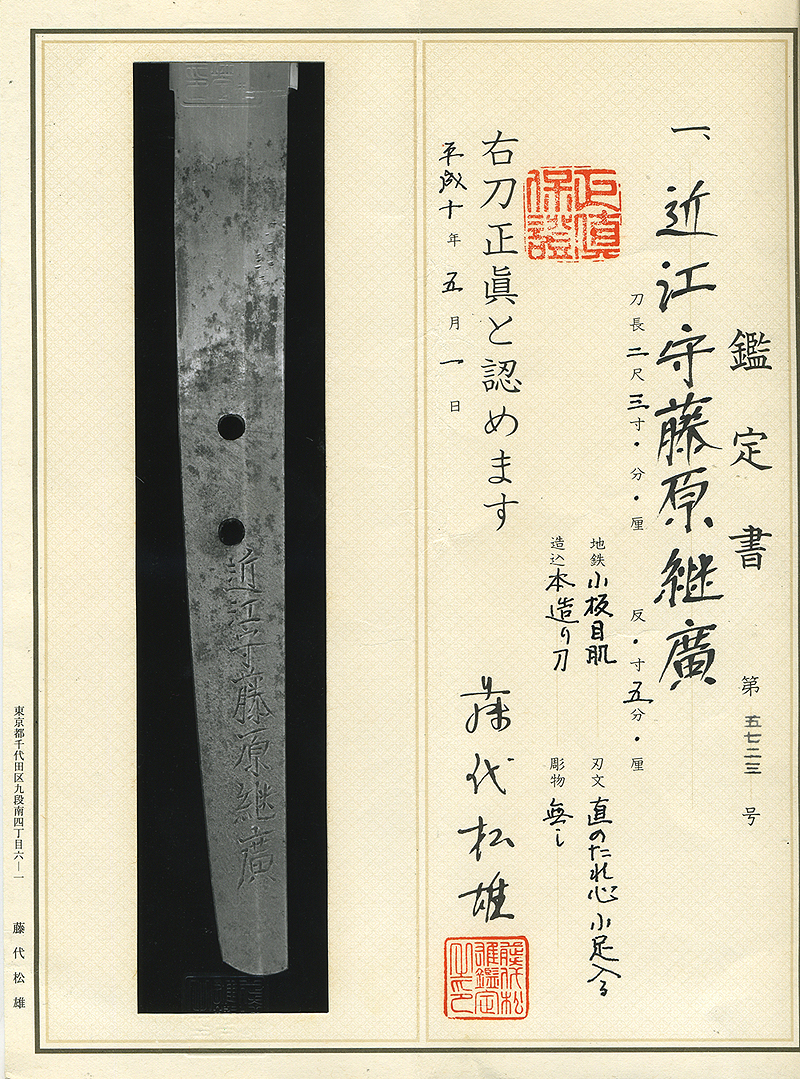 Signature : Omi Kami Fujiwara Tsuguhiro