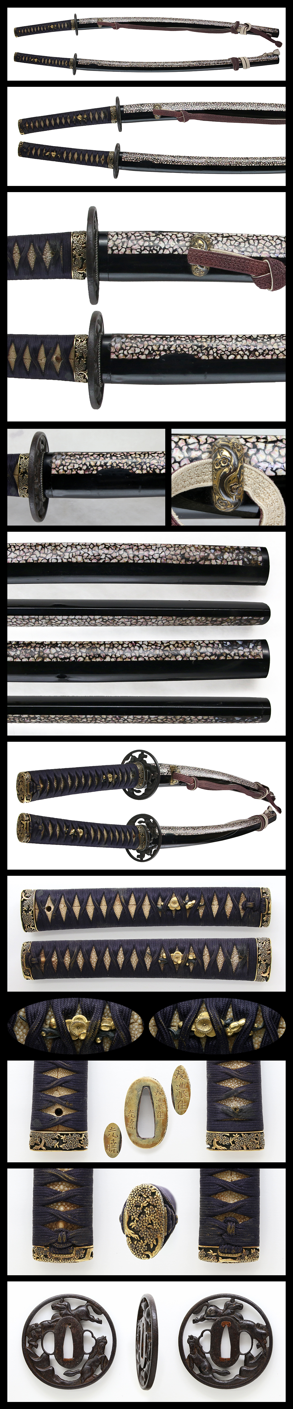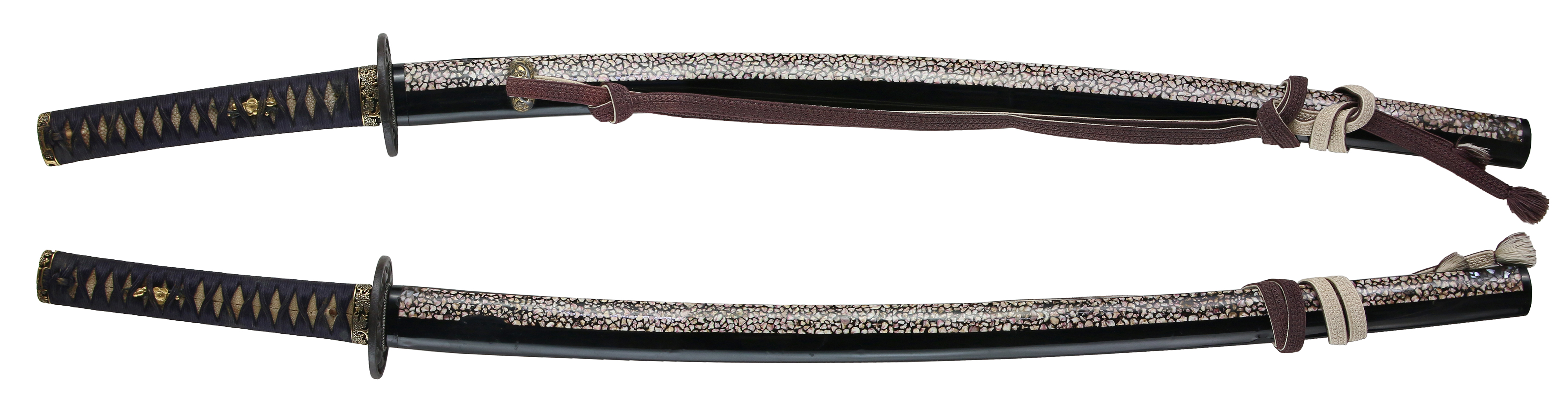 Saya : On the black roar saya, half size is covered bysmall shell s.