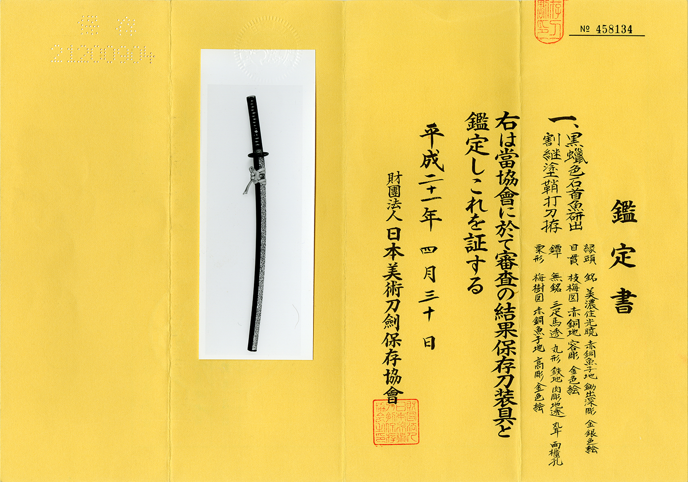 Katana in Shirasaya, with Koshirae. (NBTHK Tokubetsu Hozon Paper applied on the blade and