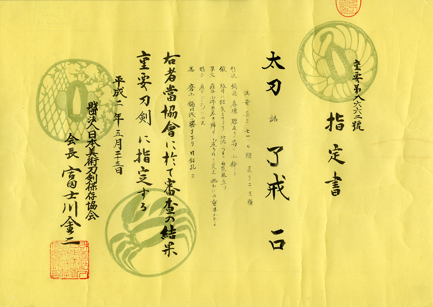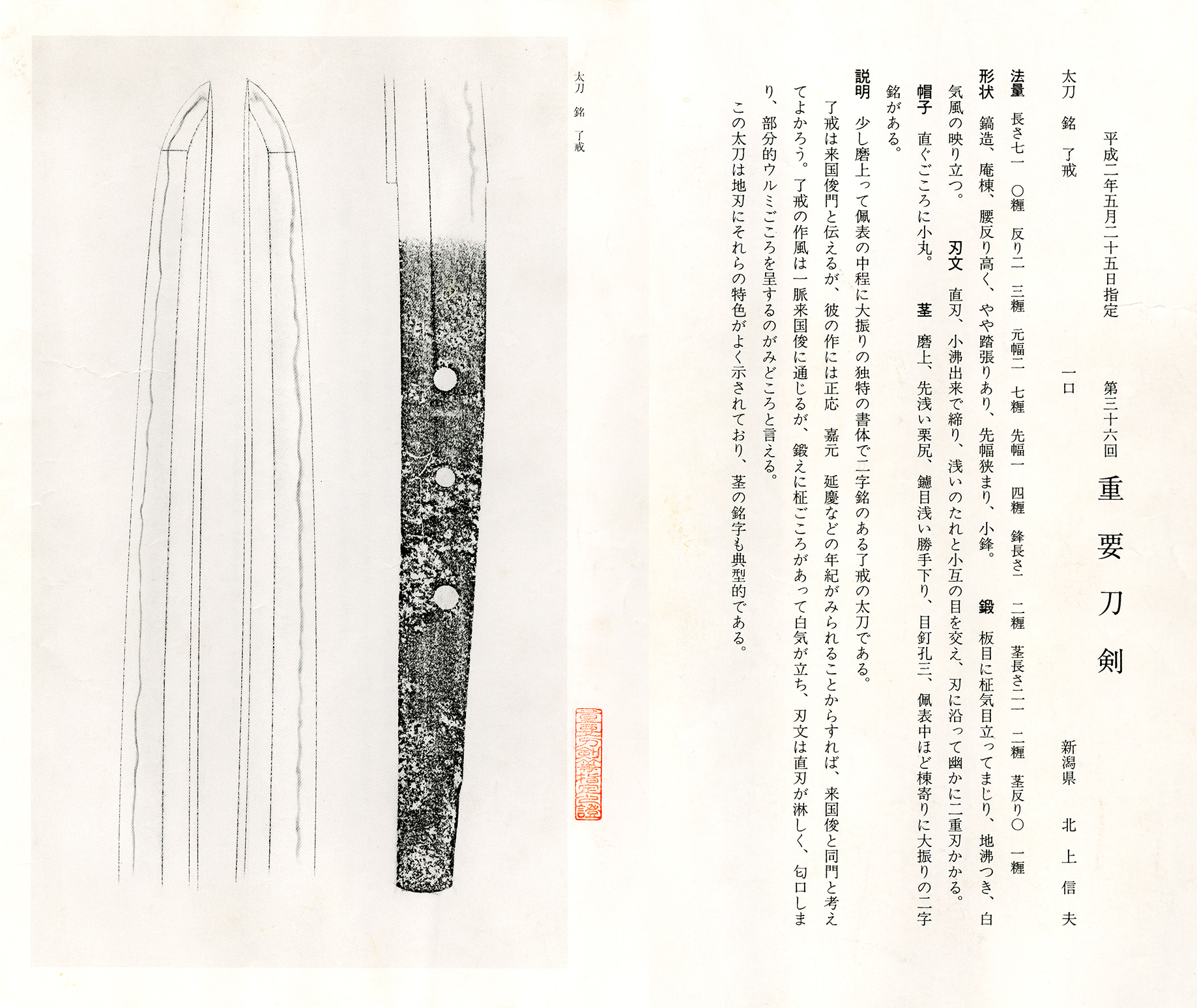 Katana: Ryokai (36th NBTHK Juyo paper)