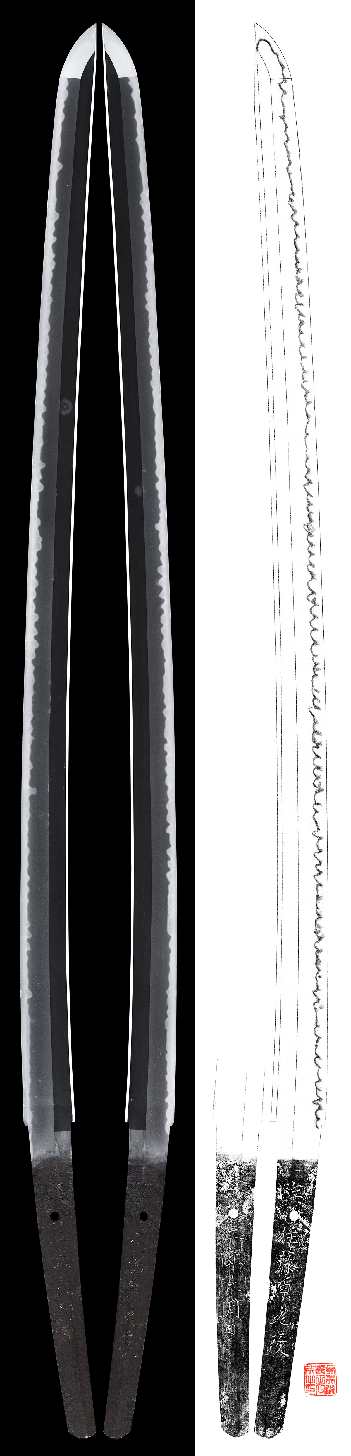 Shape : It is wide and thick katana. The kissaki part is long. It is massive katana.