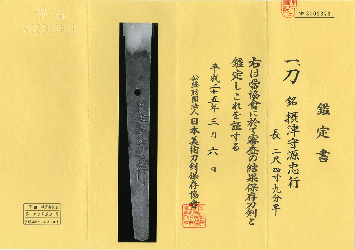 This sword Settsu Kami Minamoto Tadayuki belongs to jyo-jyo saku ranking.