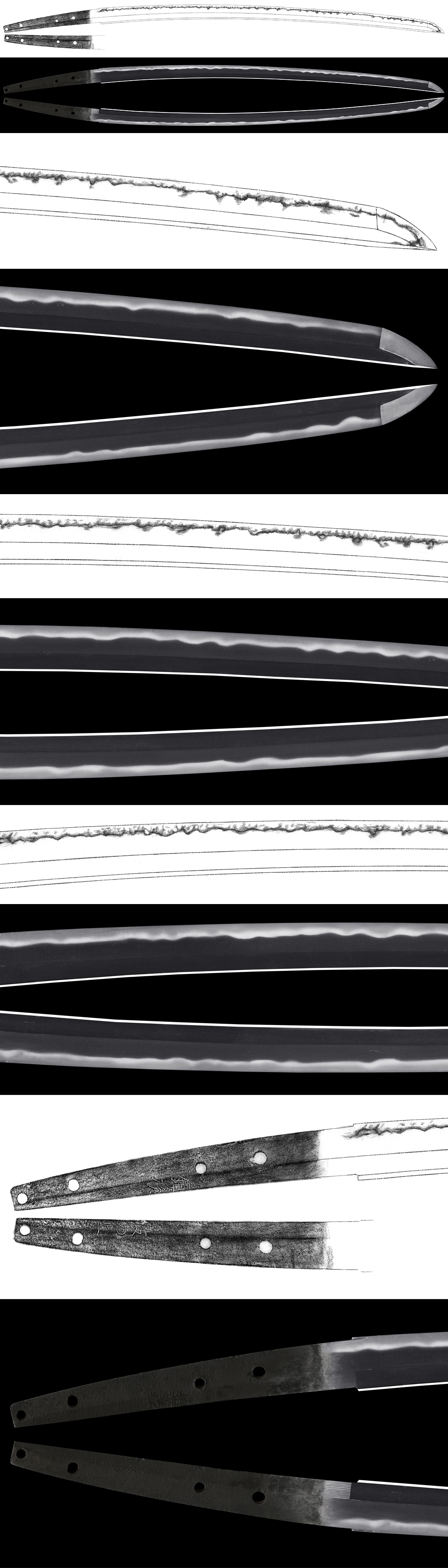 In Ha, ash and Yo ,sunagashi and small kinsuji scatter. Bosi is round modarekomi style.