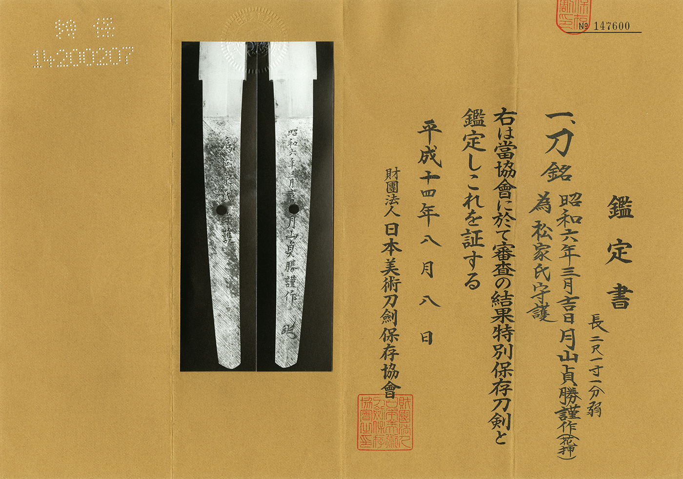 Katana : Showa 6 nen 3 Gatsu kichijitsu Gassan Sadakatsu Kinsaku (March 1931)