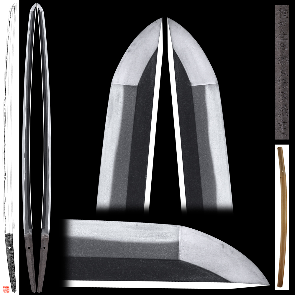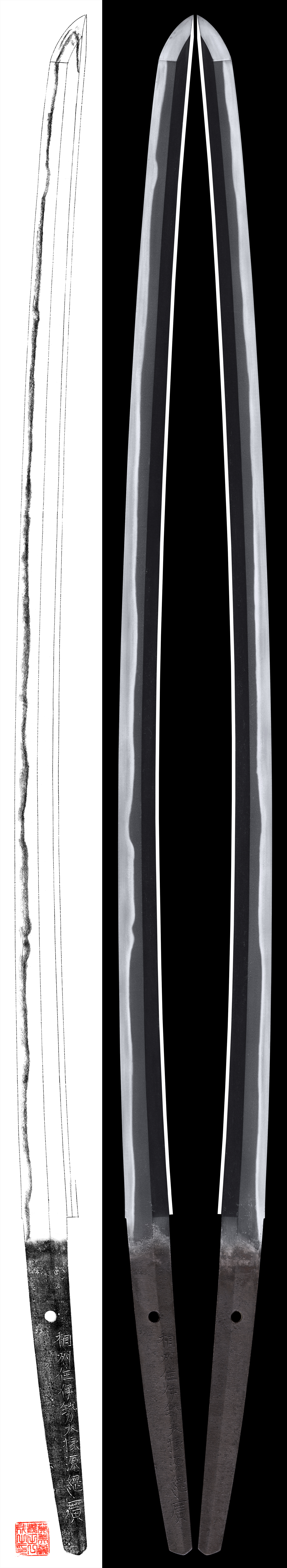 Shape : The blade is long, regular width and thickness with suitable curve, long Kissaki.