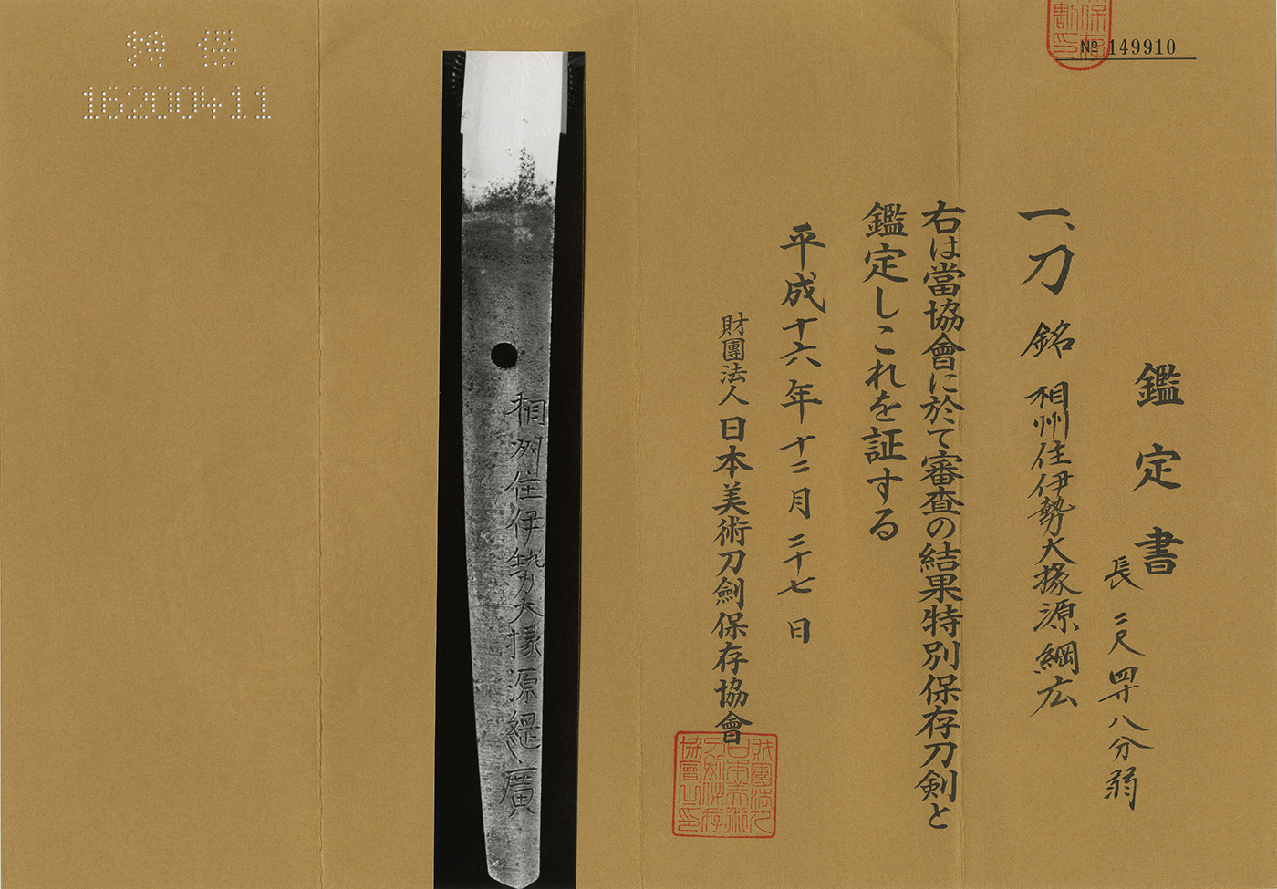 Signature : Soshu Ise Daijo Minamoto Tsunahiro (the 5th generation)