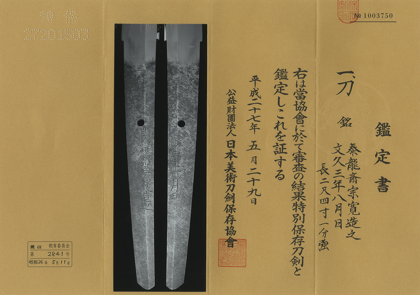 Katana in Shirasaya(NBTHK Tokubetsu Hozon paper)