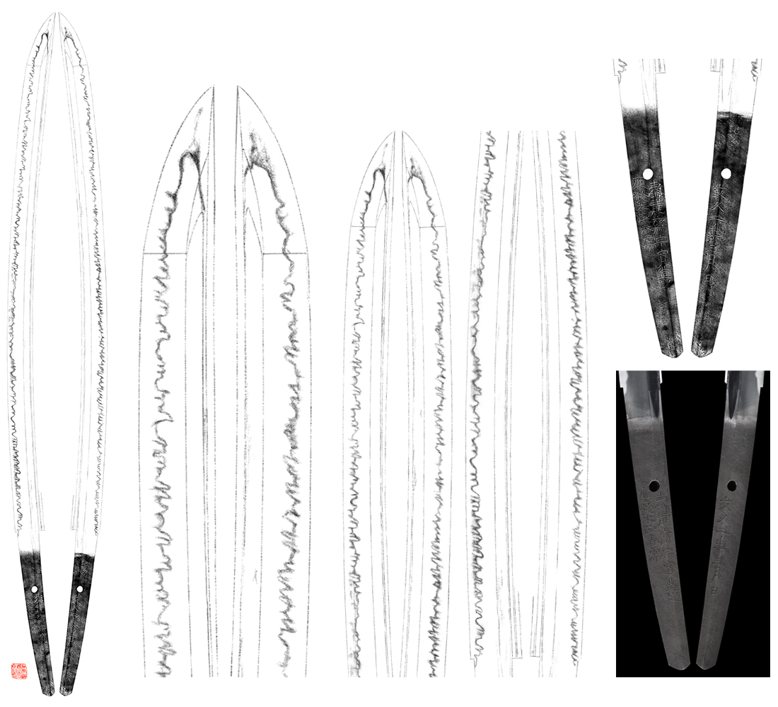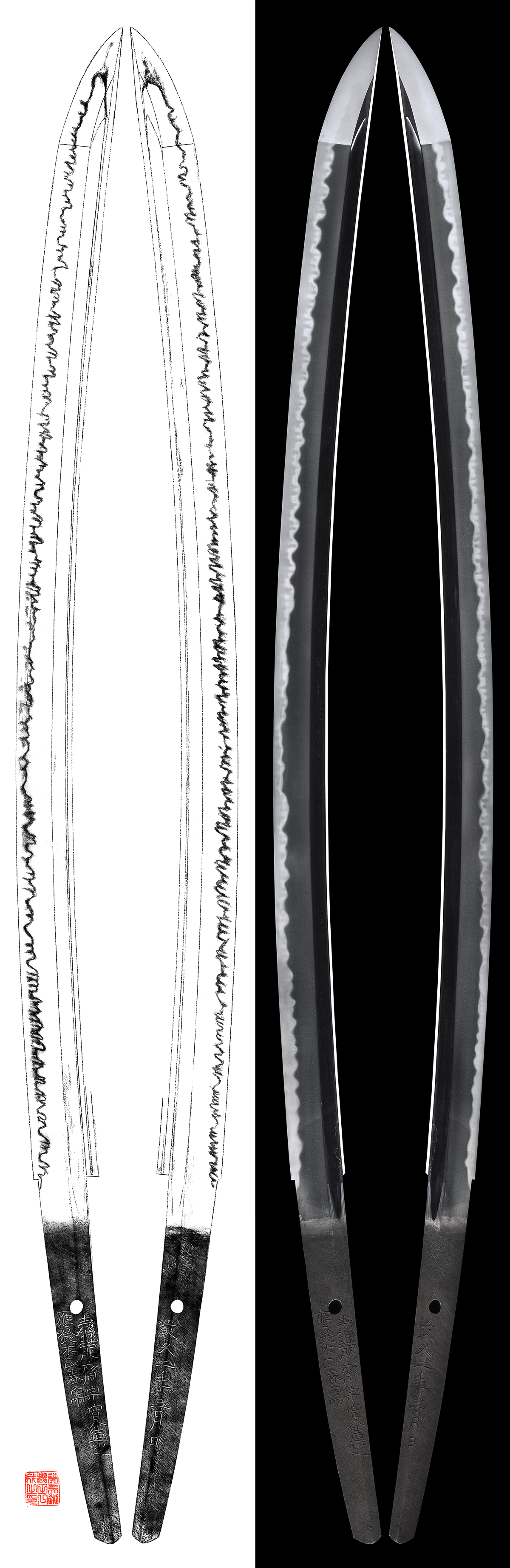 His first stage his subjects are very similar with his Master Koyama Munetsugu. But later on, his swords became gunome midare like Yosii Bizen and clear utsuri appear on the Ji.