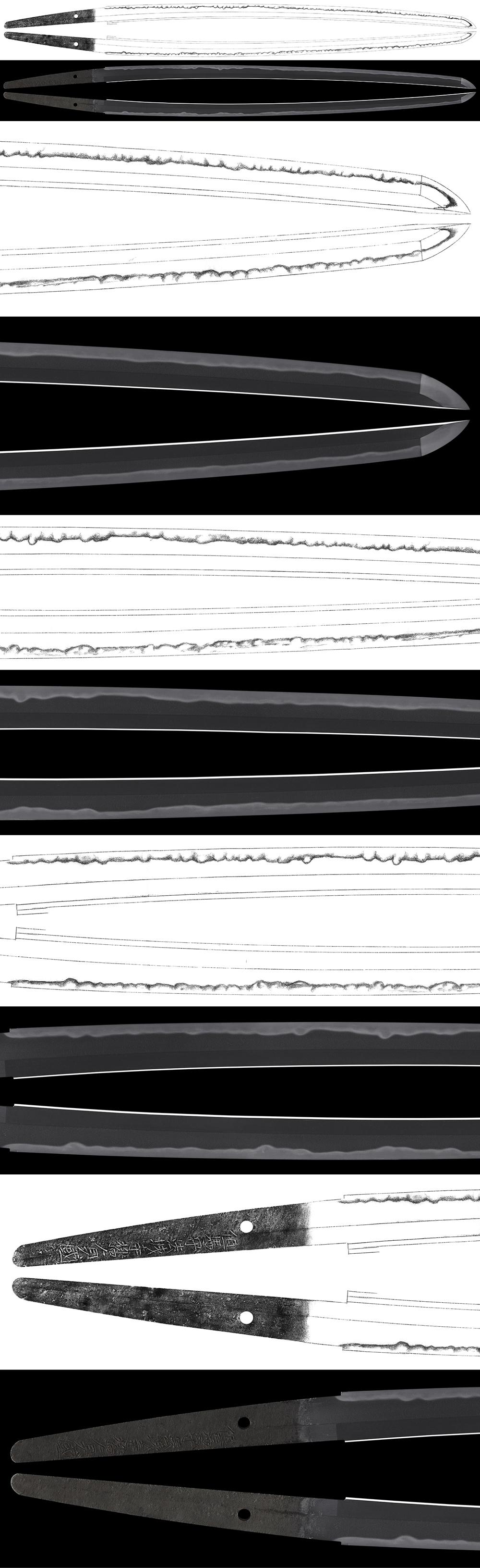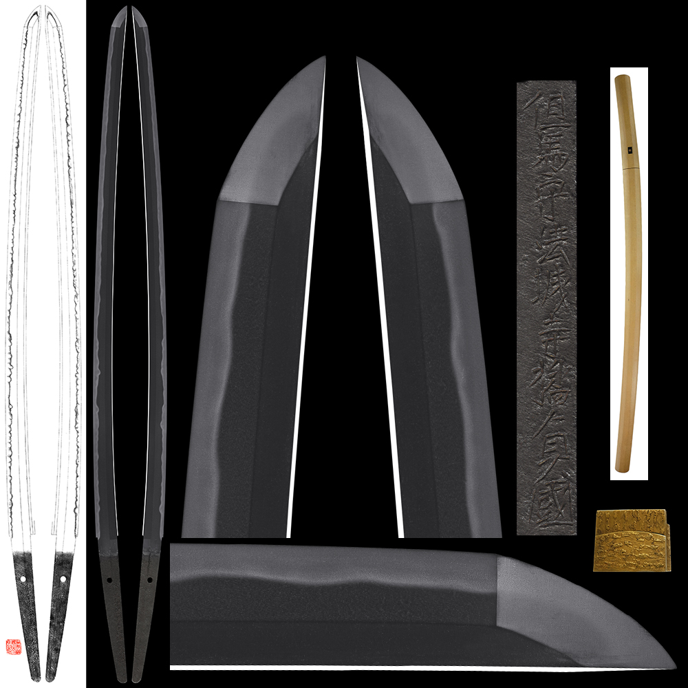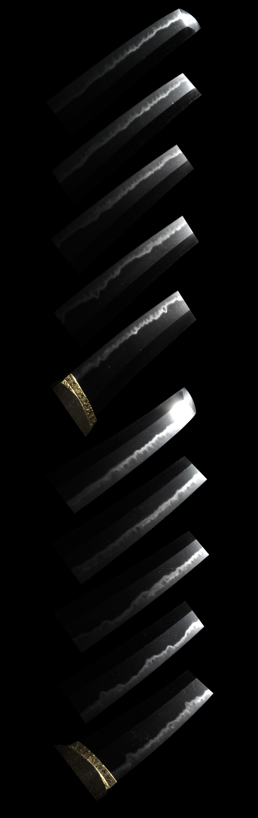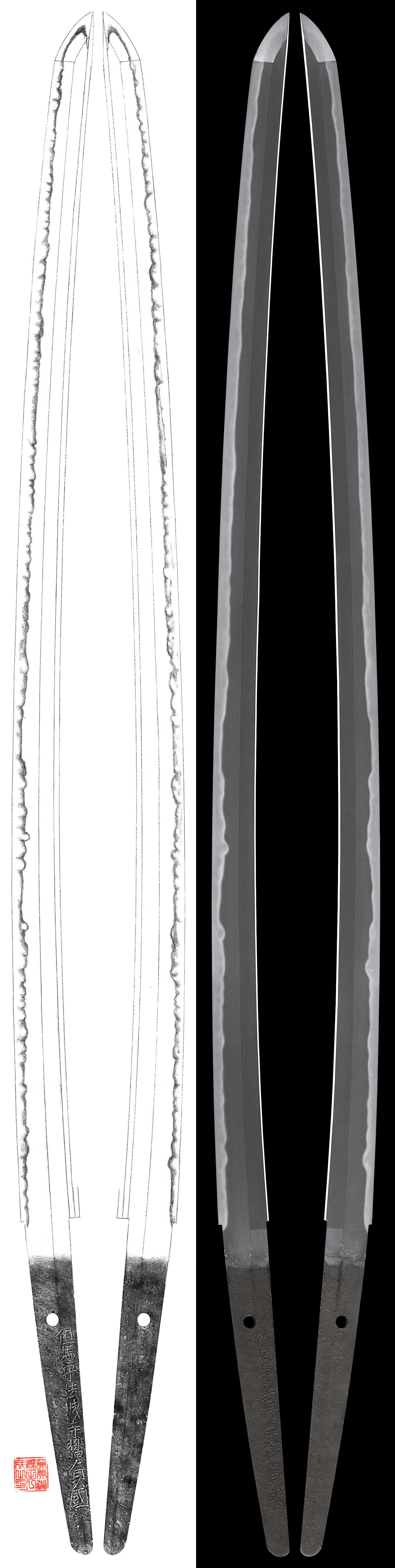 Shape : The blade is wide and thick with small sori and longer kissaki.