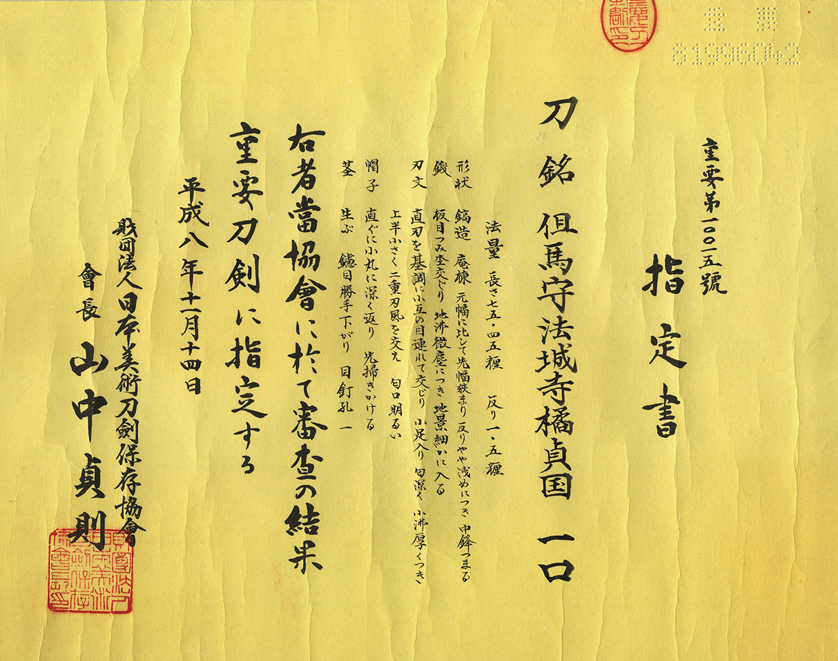 Signature : Tajima Kami Hojoji Tachibana Sadakuni.