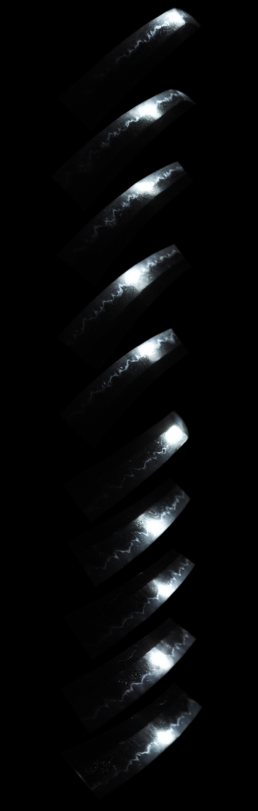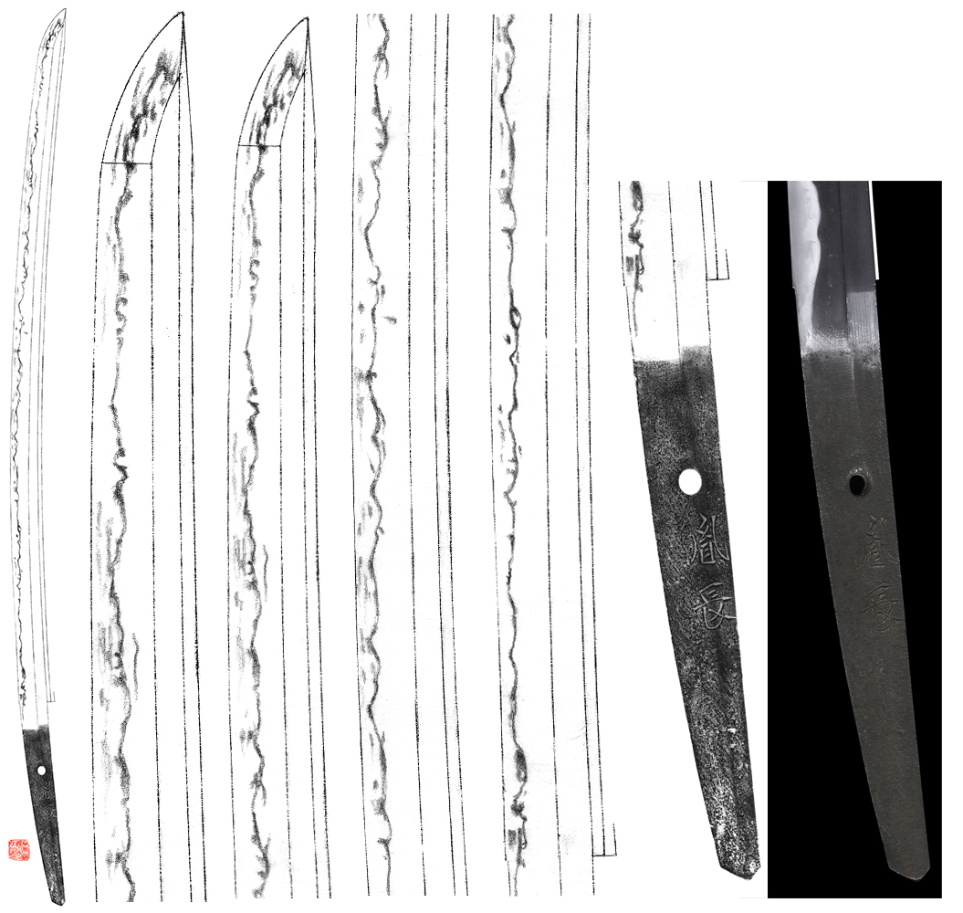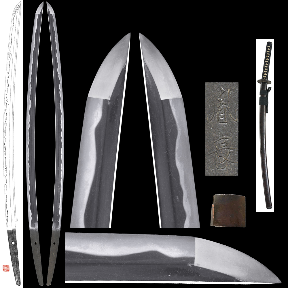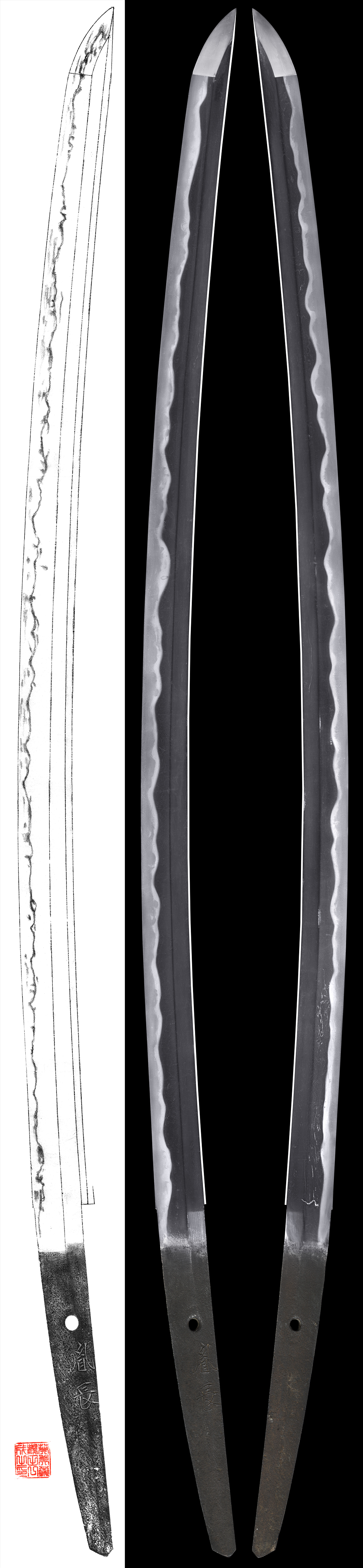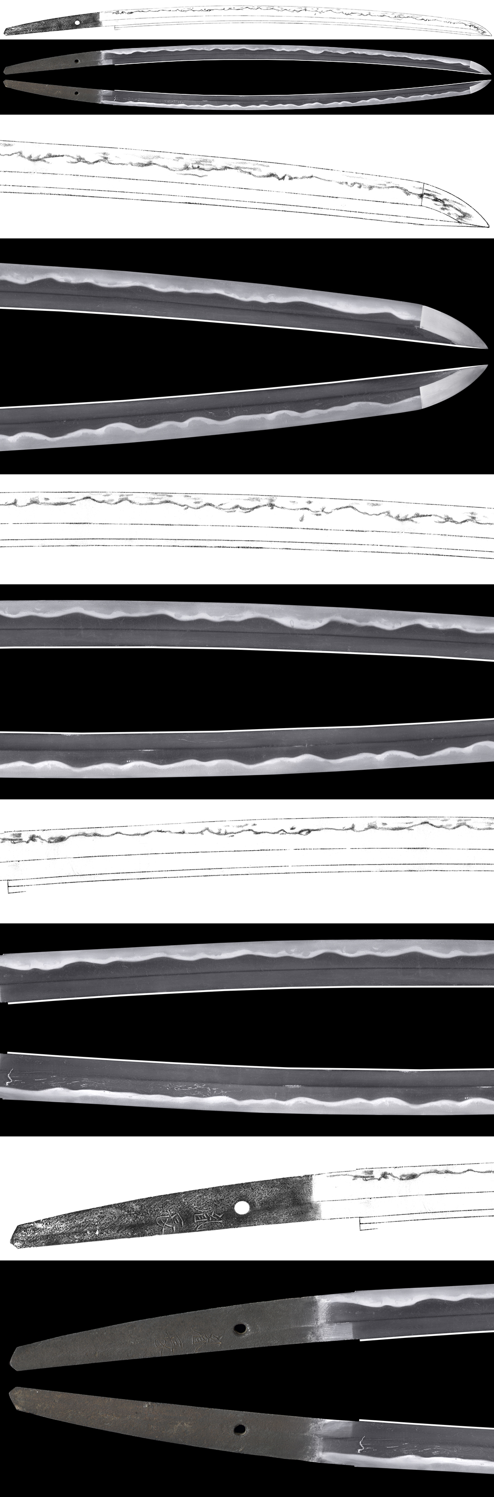 Hamon : Nie deki Gunome Midare. In Ha, there are Ko-Ashi.