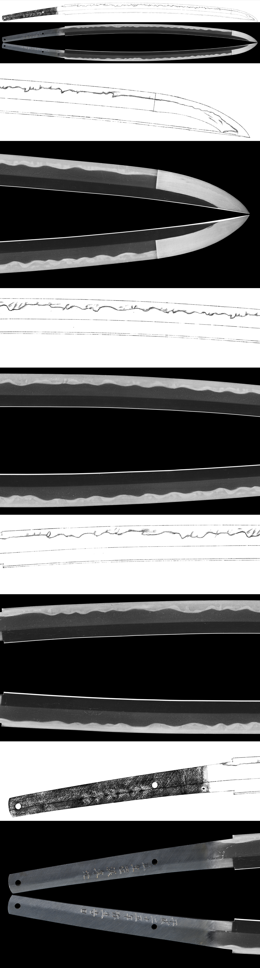 Hamon : Niedeki gunome midair with ash and Yo work in Ha.