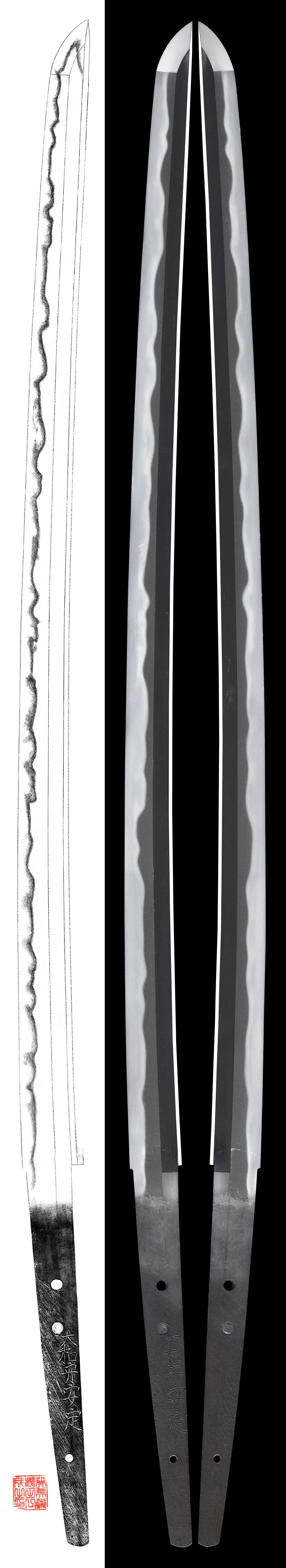 Shape : The blade is wide and thick with small sori and regular size boshi.