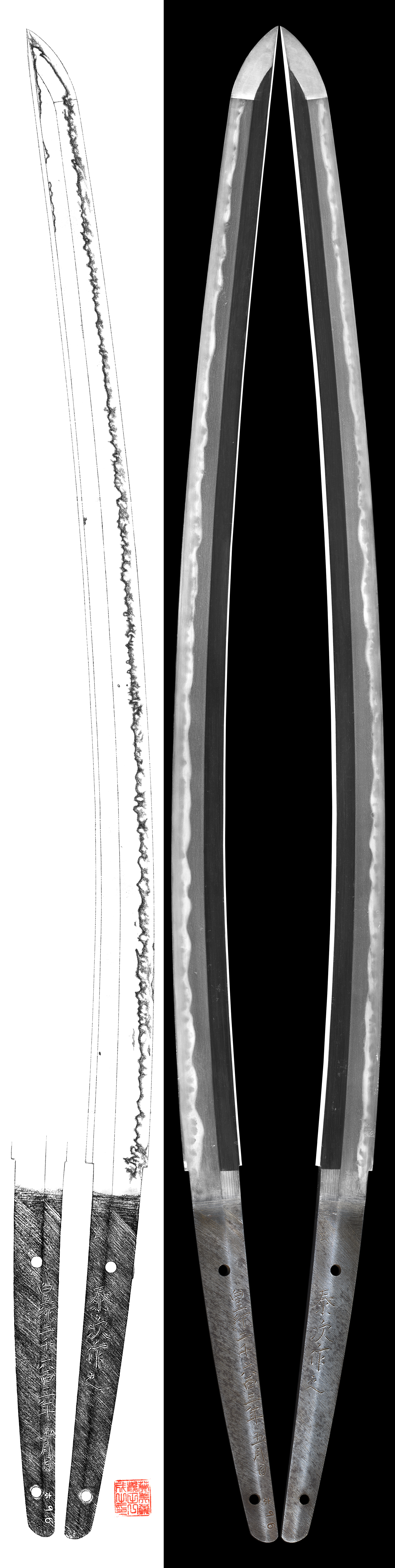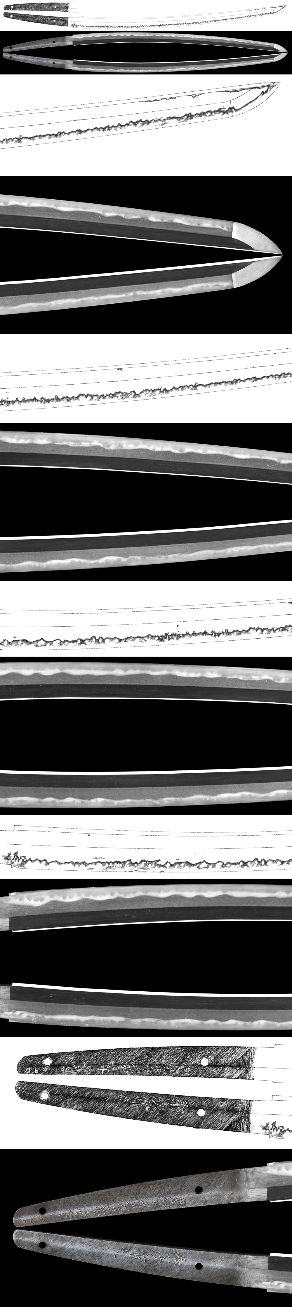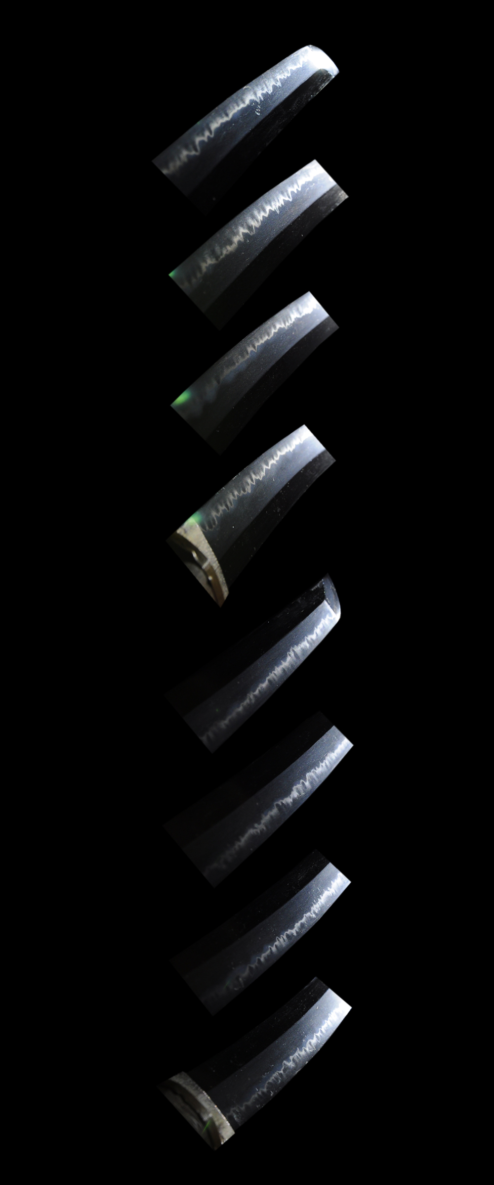 Hamon : Niedeki gunome midair and cyoji midair mixed withashi.