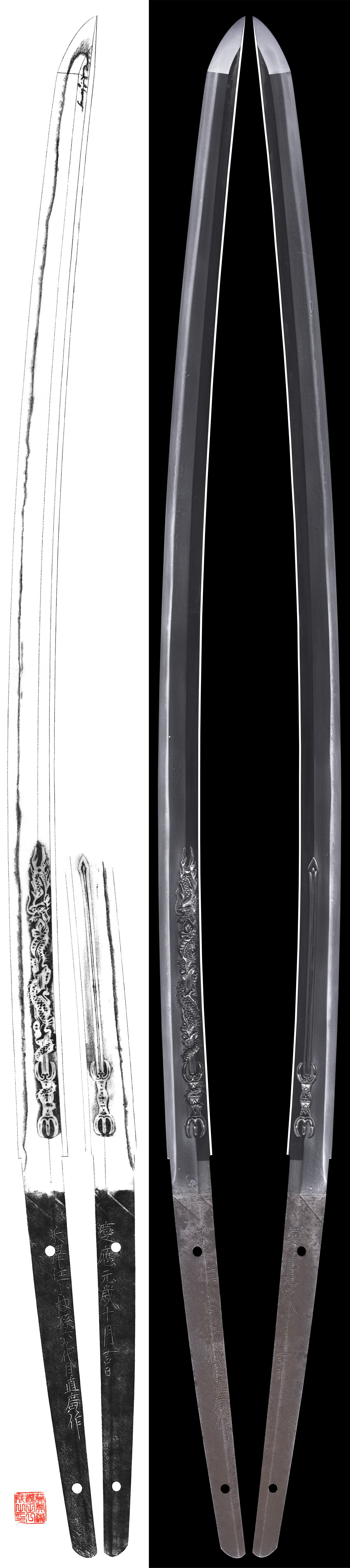 on the reverse side, engraved deep Kenmaki ryu (a dragon)