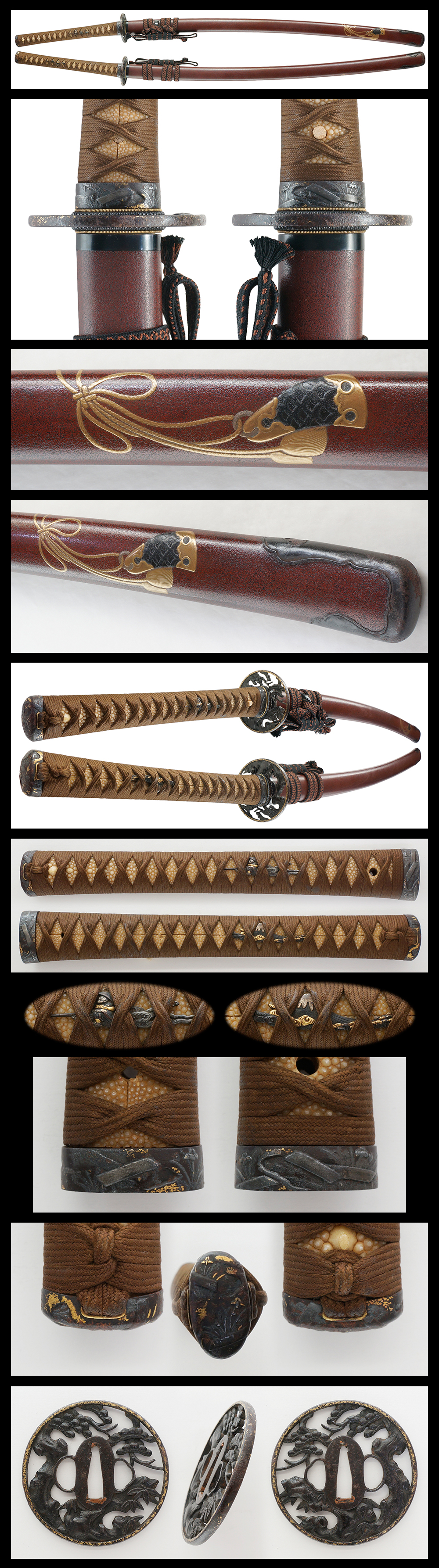 Saya:on the red brown color ishimeji saya, a rope and an instrument is painted by gold and silver color.