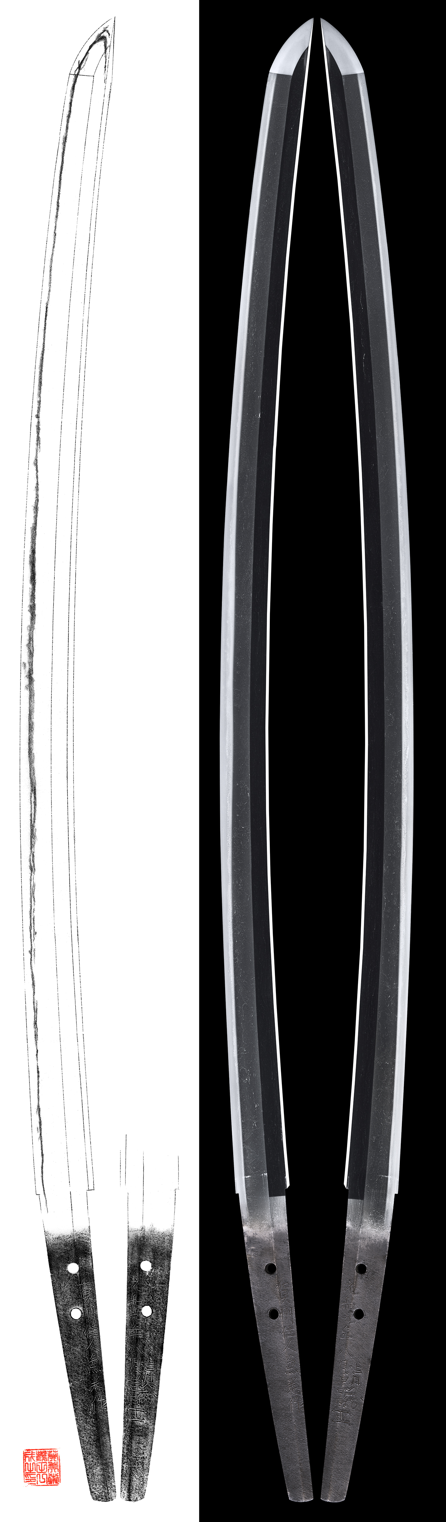Shape : The blade is rather wide and kong kissaki nice looking shape.