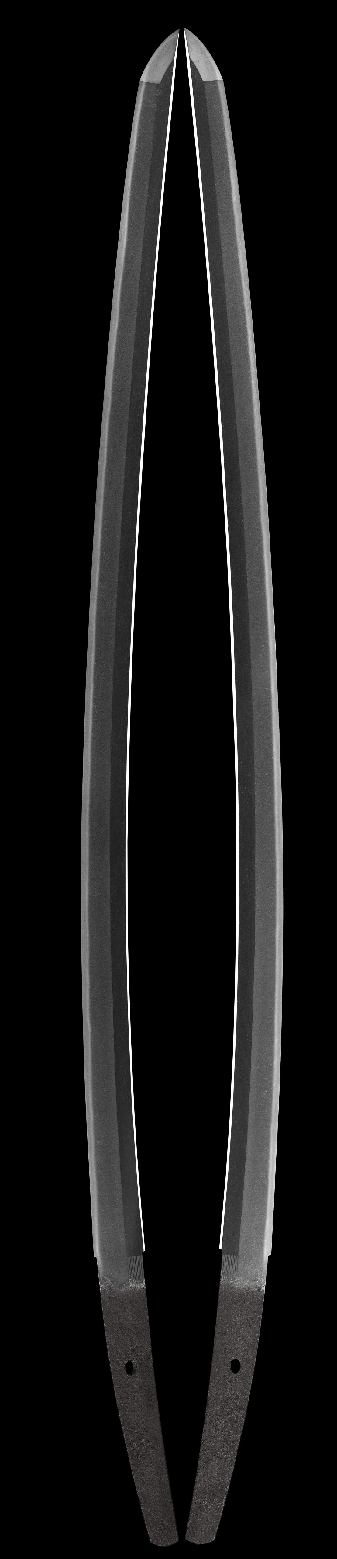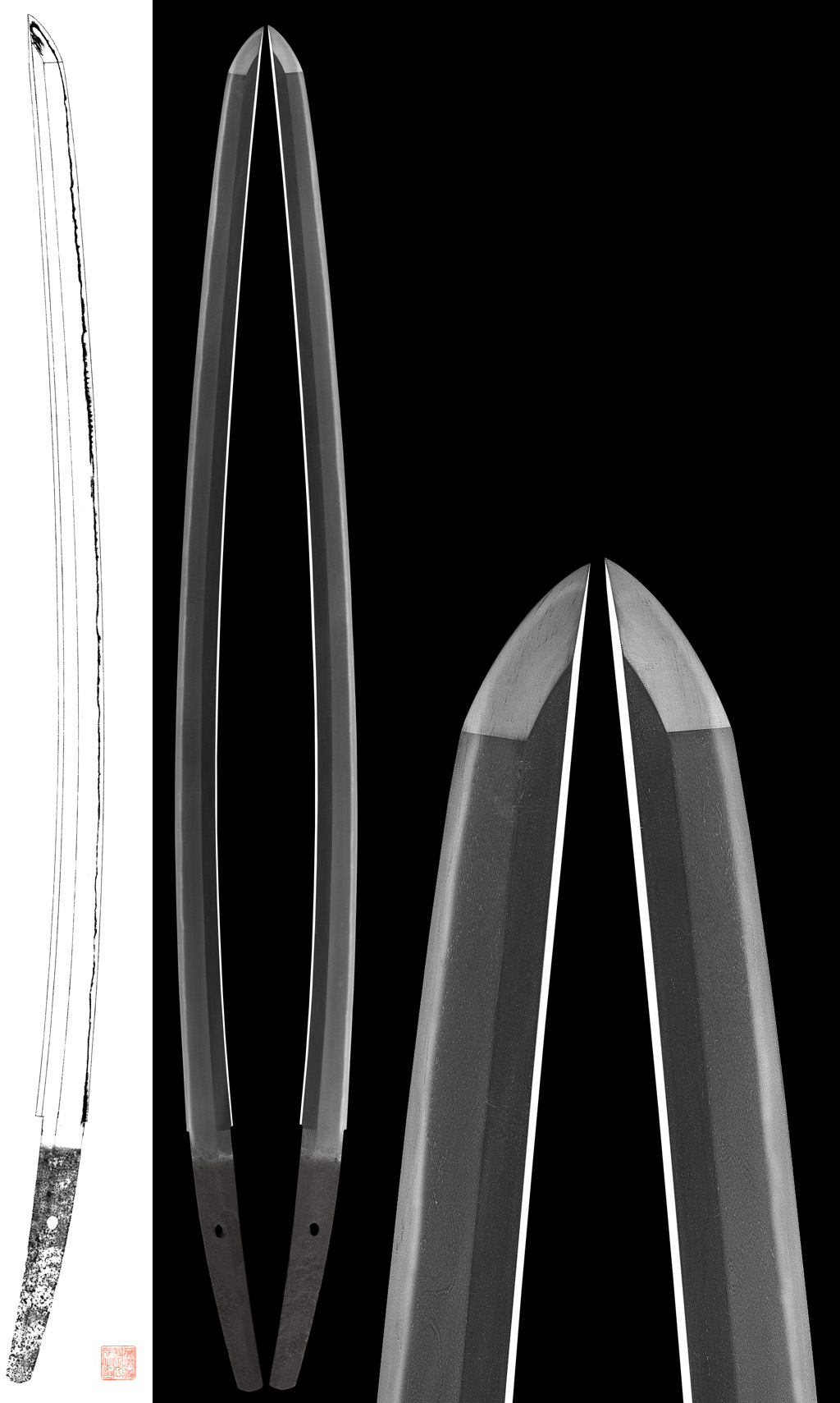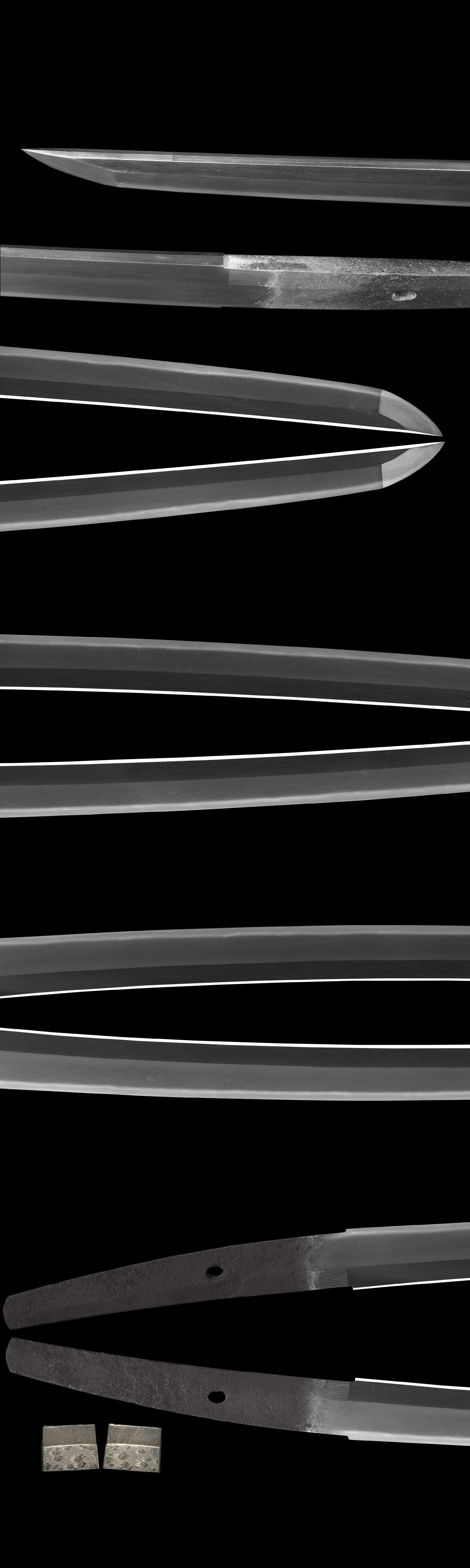 Shape : This blade regular sized Osuriage Mumei Katana with rather long Kissaki and Sori.