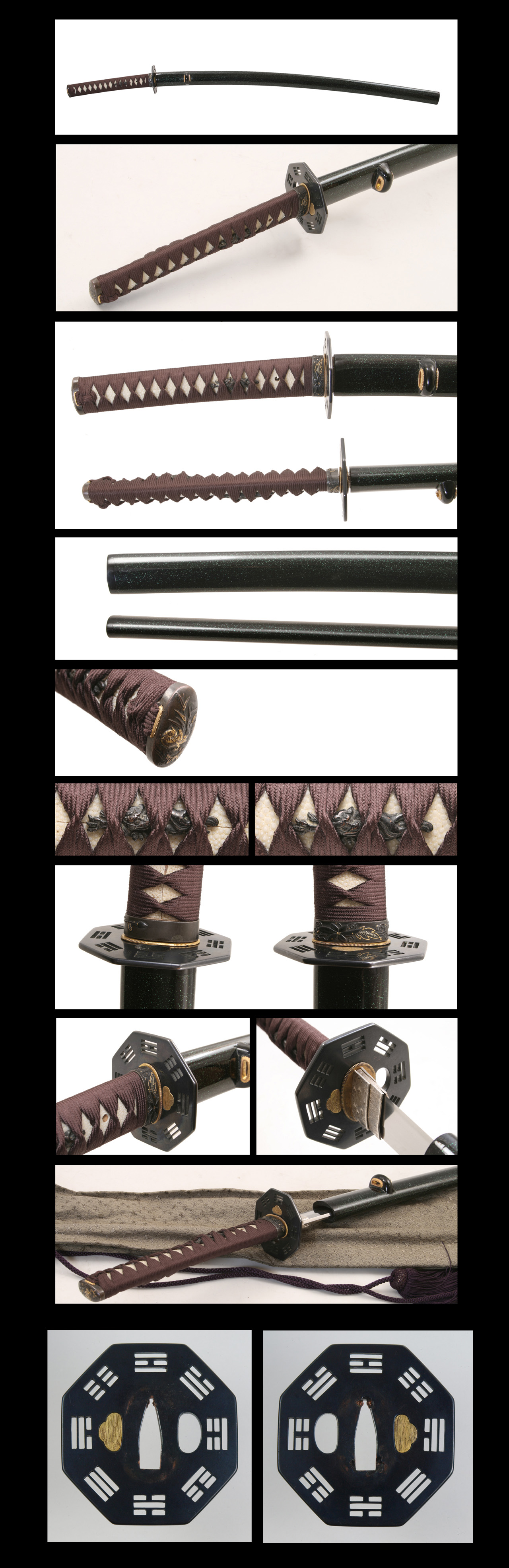 Tsuba : On the octagon shaped Shakudo Tsuba, openwork is engraved.