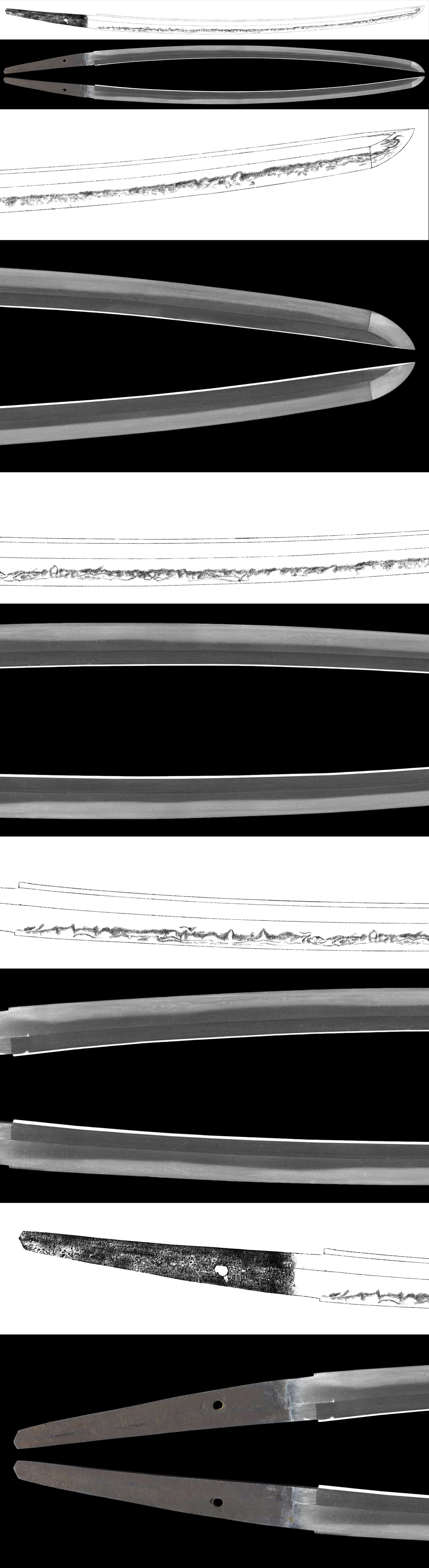 Hamon : Niedeki suguha and notare and also gunome midare mixed with jinie attach niekuzure. In Hamon, there are many sunagashi kinsuji work.