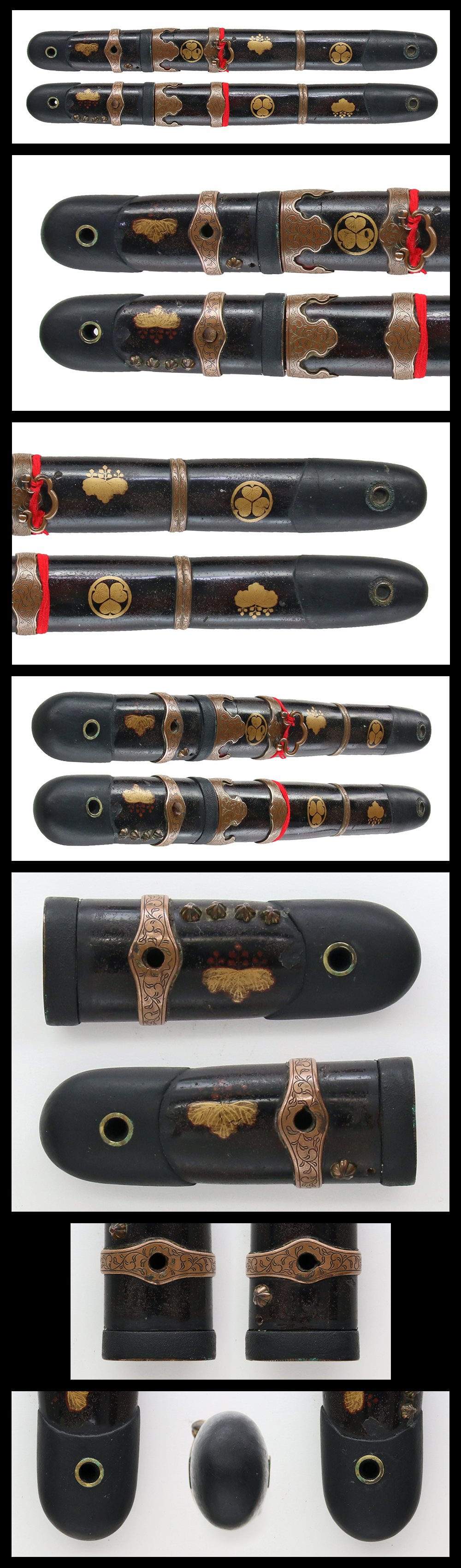 Saya: Black Ishime-Ji Saya with family crest, gold color.