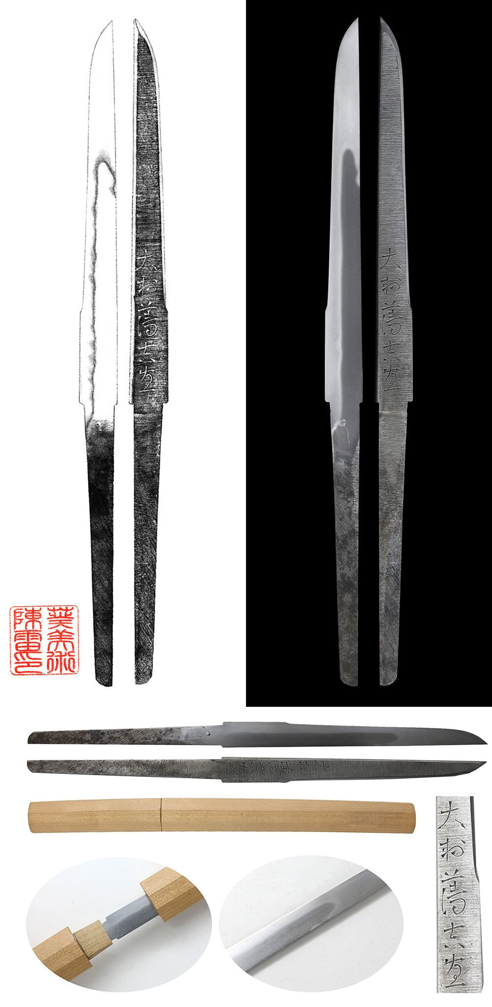 Set of Kozuka Kogatana: Mei (signature) : Mumei (unsigned) #1: Maximal length (Kozuka and Kogatana): 21 cm or 8.26 inches Blade Length : 9 cm x 1.11 cm ( 3.54 inches x 0.43 inches) Kozuka Length : 9.62 cm x ...