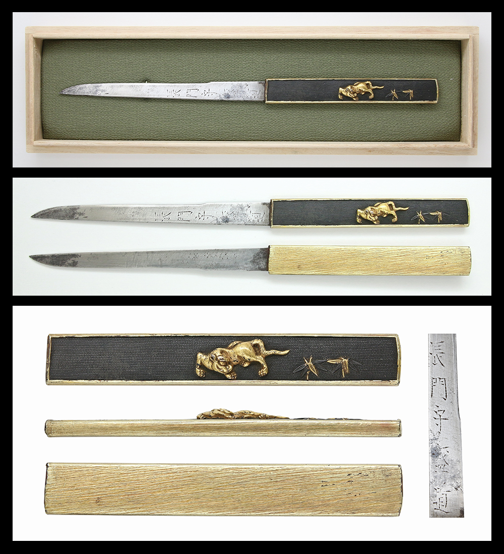 Kogatana: On the front, it is engraved Nagakado kami Morimichi.