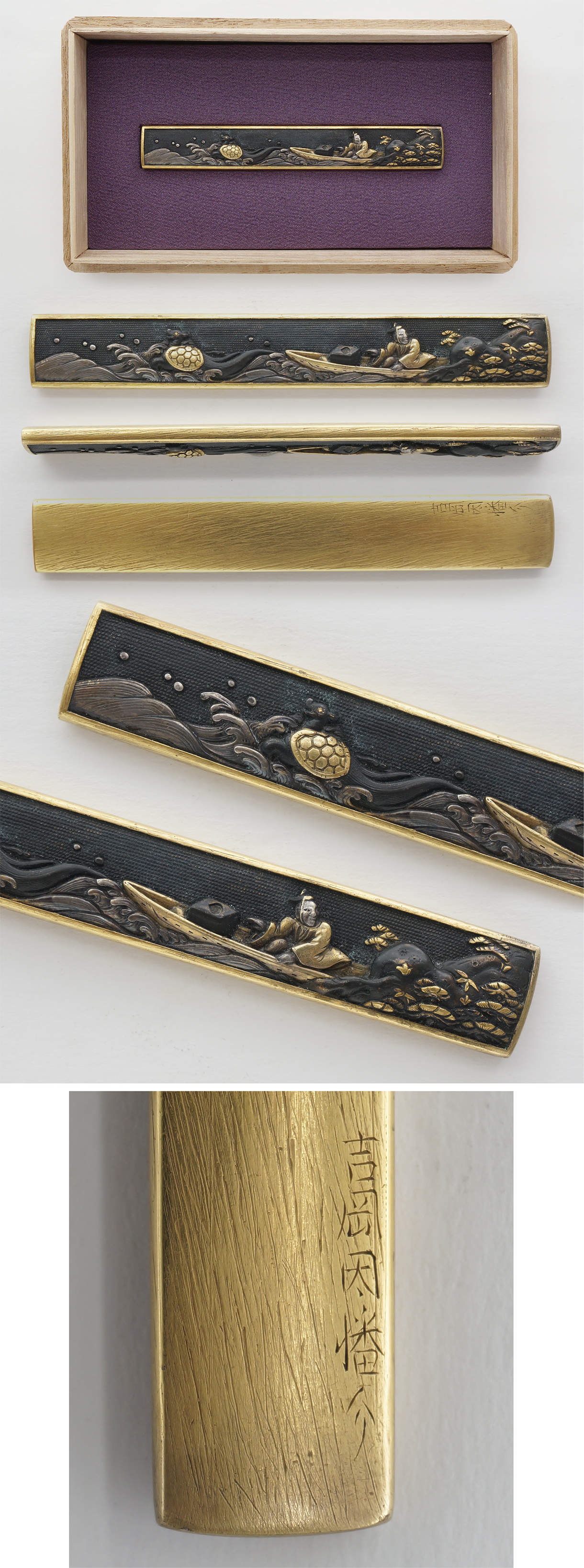 Special feature: Shakudo nanakoji plate with the scene from the tale of Urashima is engraved and inlaid with gold and silver Yoshioka Inaba nosuke is quite well known family which was under control by Tokugawa syogun as same as Goto family.