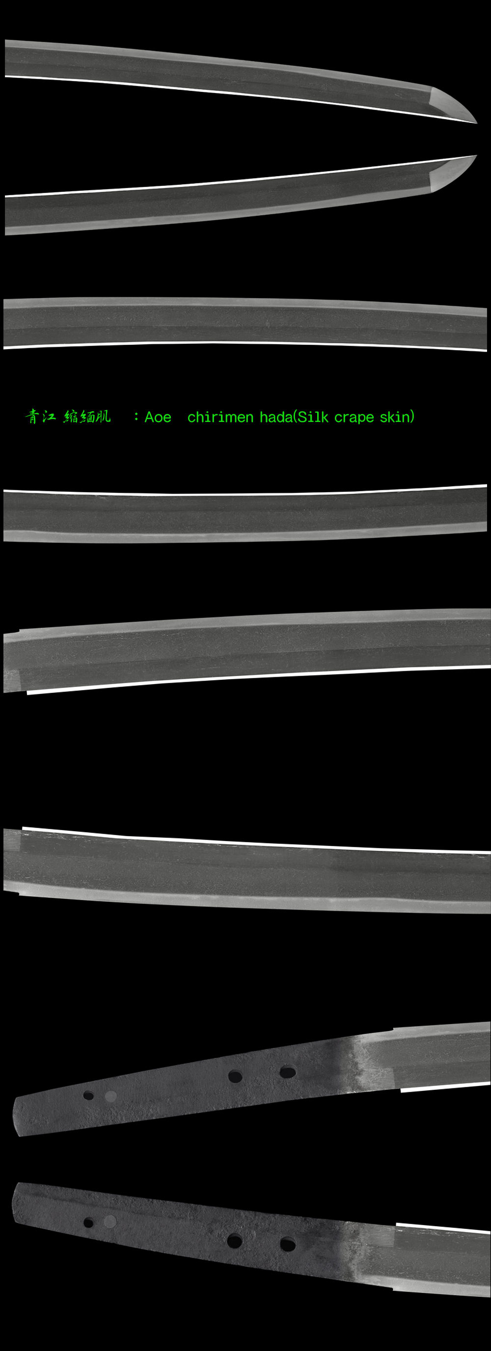 Jitetsu : Itame had well grained with jinie attach silk crape Jigane which is called Chirimen hada.