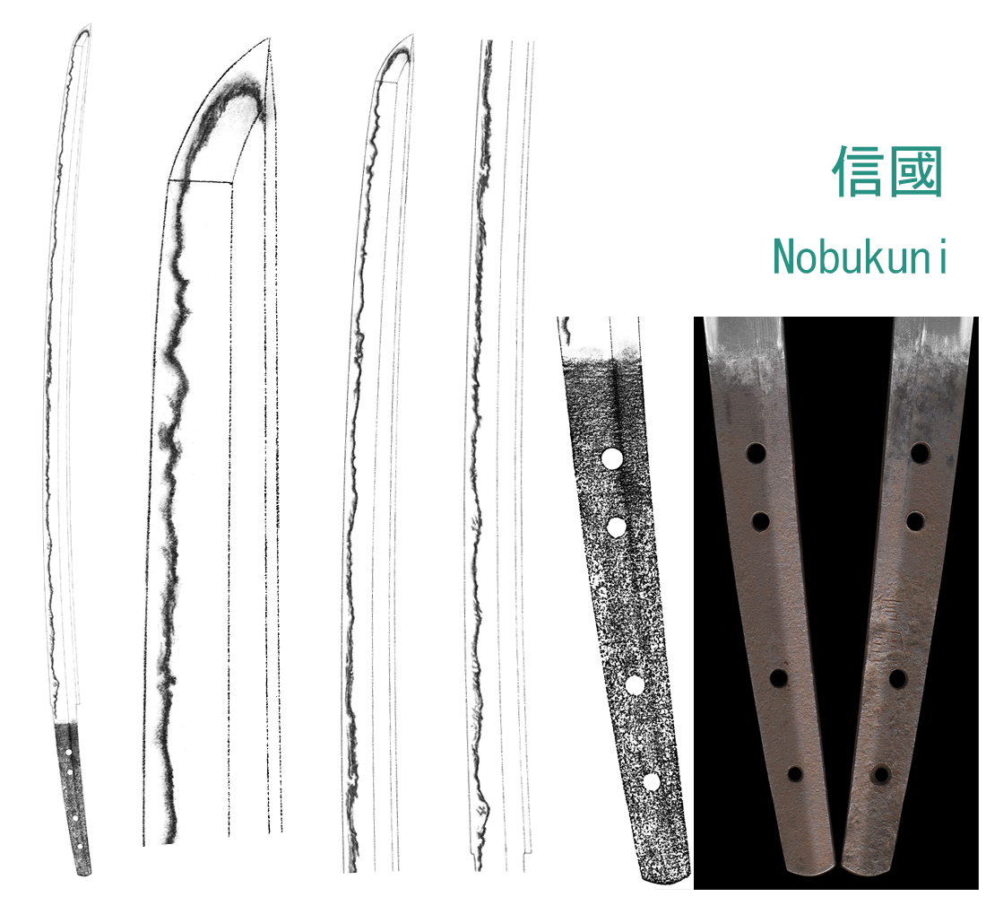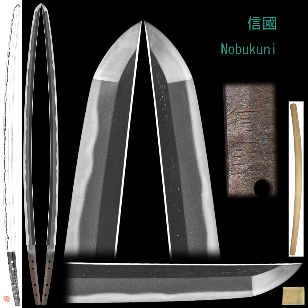 This blade was made by Kyo province (Yamashiro) Nobukuni. His master was Soushu Sadamune. The 2nd generation is Gengoro, 3rd generation is Genzaemon, and the 4th generation is Shikibu no Jyou Nobukuni.
