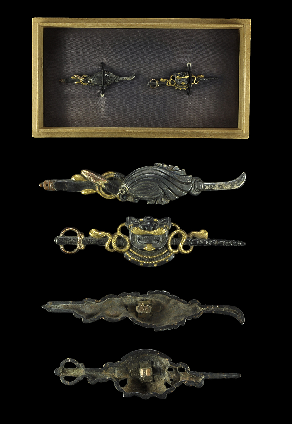 Menuki : Mei (signature) : mumei (Unsigned) Length 1 : 3.53 cm x 1.66 cm (1.38 inches x 0.65 inches) Length 2 : 3.36 cm x 1.59 cm (1.32 inches x 0.62 inches) Jidai (era) : Edo period. Special feature ...