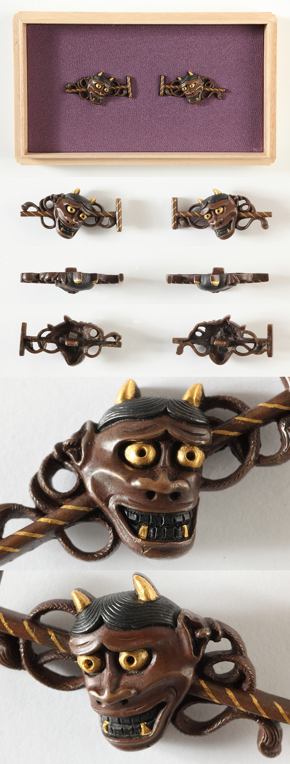 The motif of this menuki is most likely the Oni mask used in the Noh play.