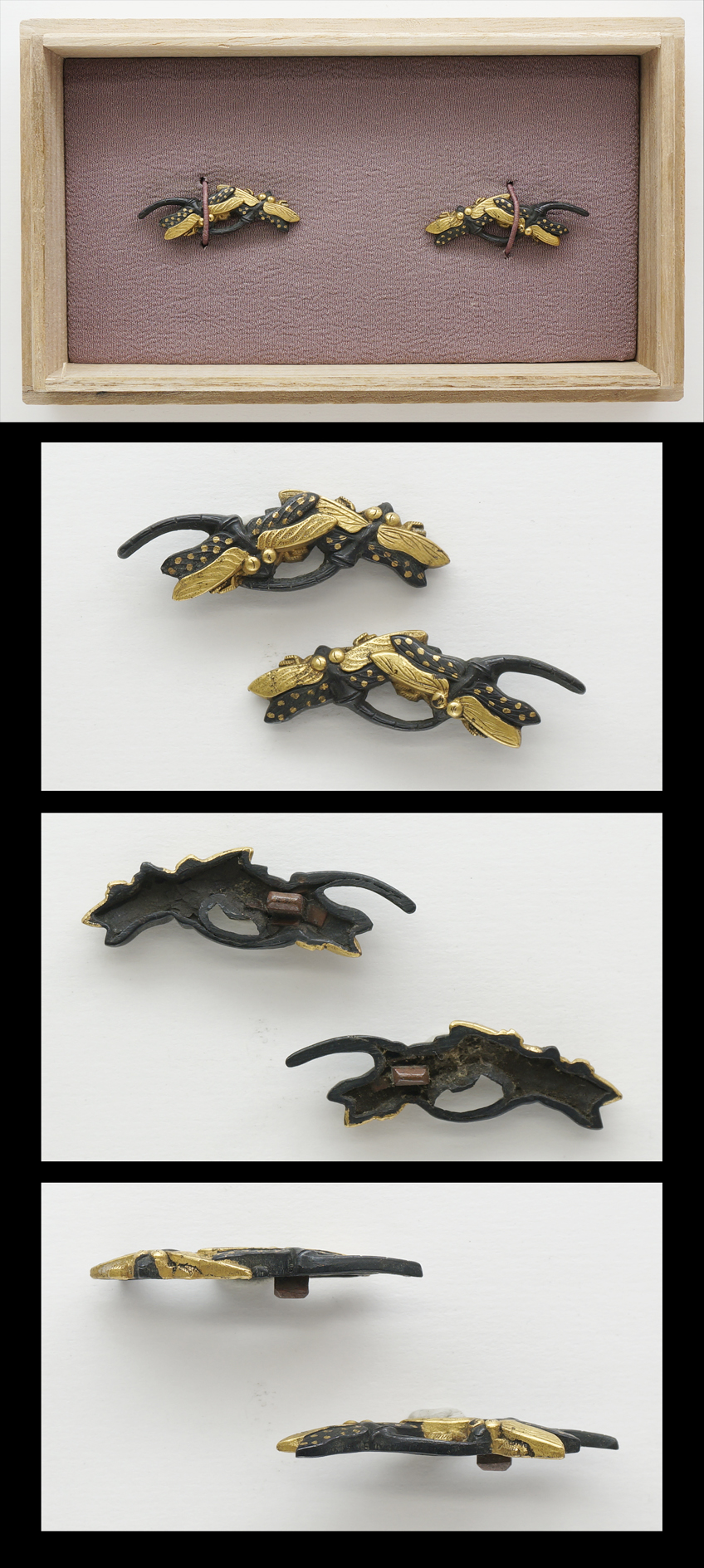 Menuki : Mei (signature) : Mumei (Unsigned) Length 1 : 4.23 cm x 1.5 cm (1.66 inches x 0.59 inches) Length 2 : 4.14 cm x 1.51 cm (1.62 inches x 0.59 inches) Jidai (era) : Edo period. Special feature ...