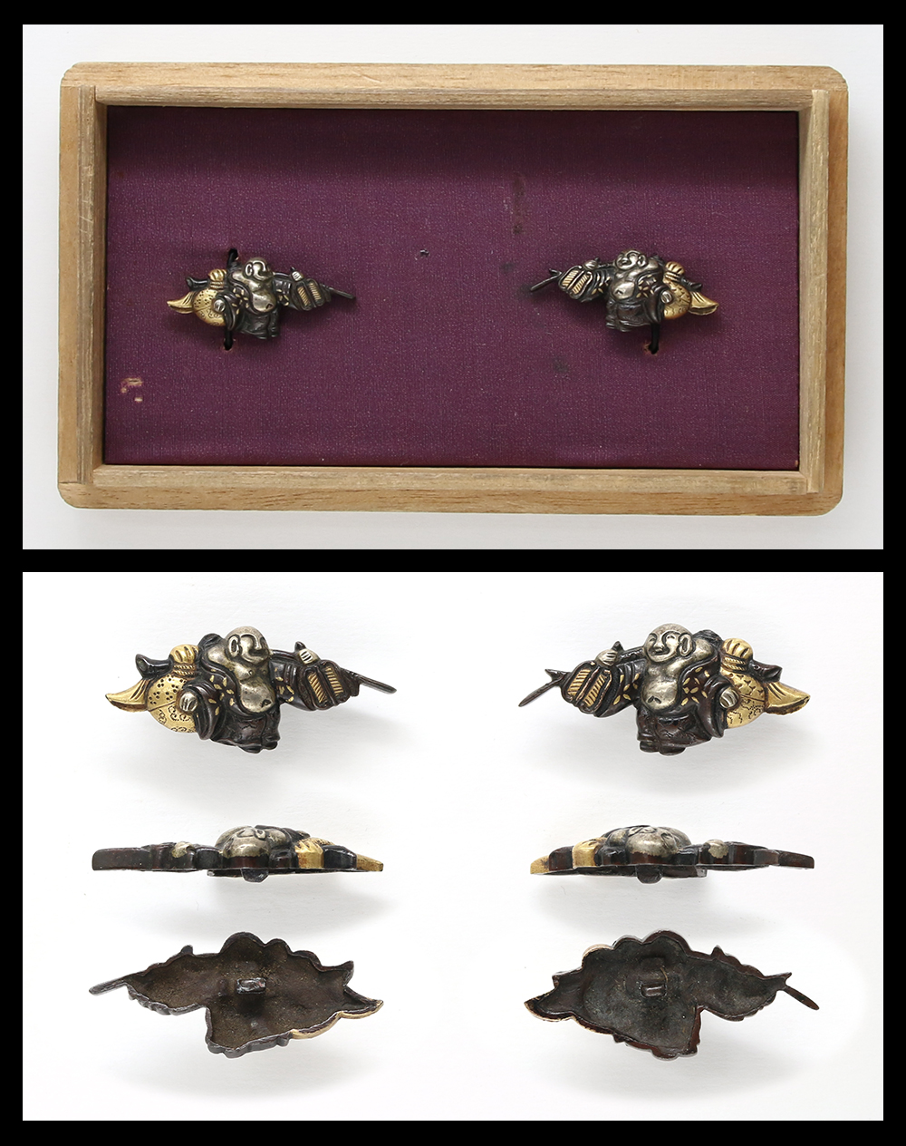Ordering number : F15006 Menuki : (NBTHK Hozon Paper) Mei (signature) : mumei(Kyo Kinko) Length 1 : 3.77cm x 1.39cm ( 1.48inches x 0.55inches) Length 2 : 3.71cm x 1.27cm ( 0.46 inches x 0.5inches) Weight:6g Jidai(era) :Edo Period Special ...