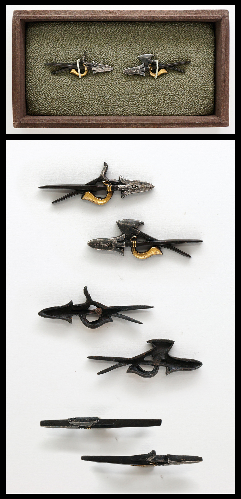 Ordering number : F08240 Menuki: Mei (signature) : Mumei(Unsigned) Menuki 1 Length : 3.16 cm or 1.24 inches x 1.50 cm or 0.59 inches Menuki 2 Length : 3.12 cm or 1.22 inches x 1.61 cm or 0.63 inches Jidai(era) ...