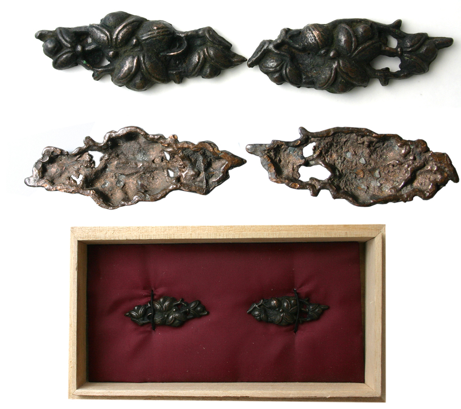Menuki:Mumei on the Yamagane plate, nuts are engraved