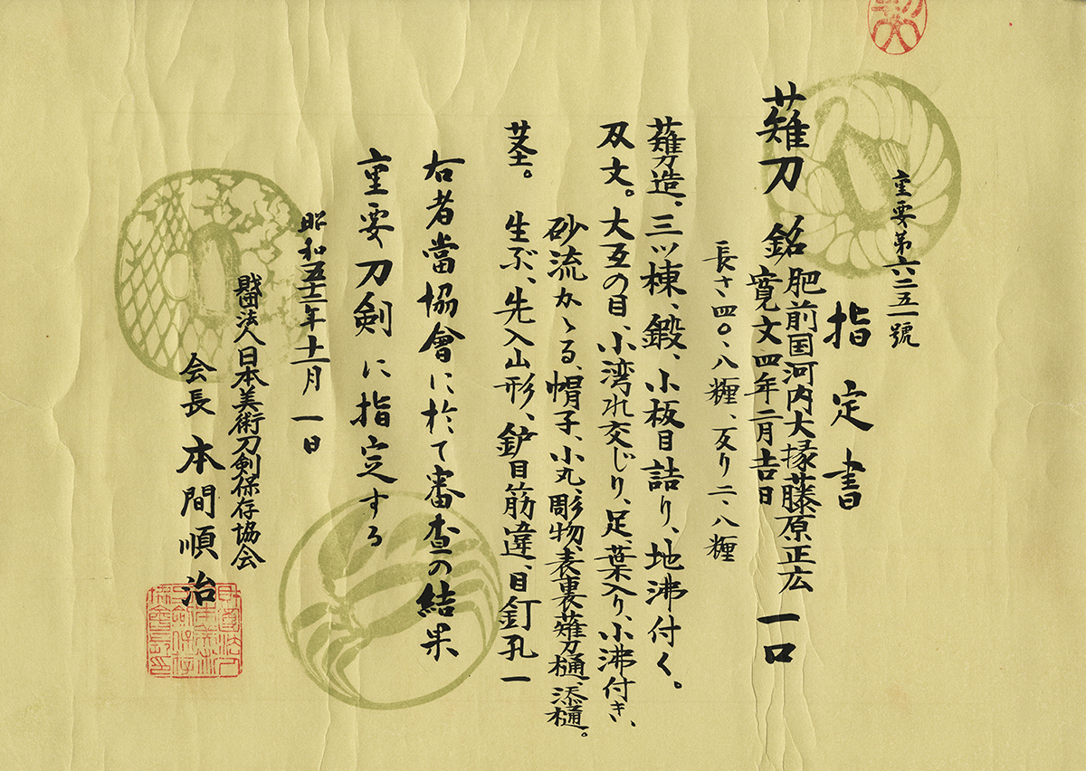 Special feature:Masahiro was a swordsmith of Hizen province.