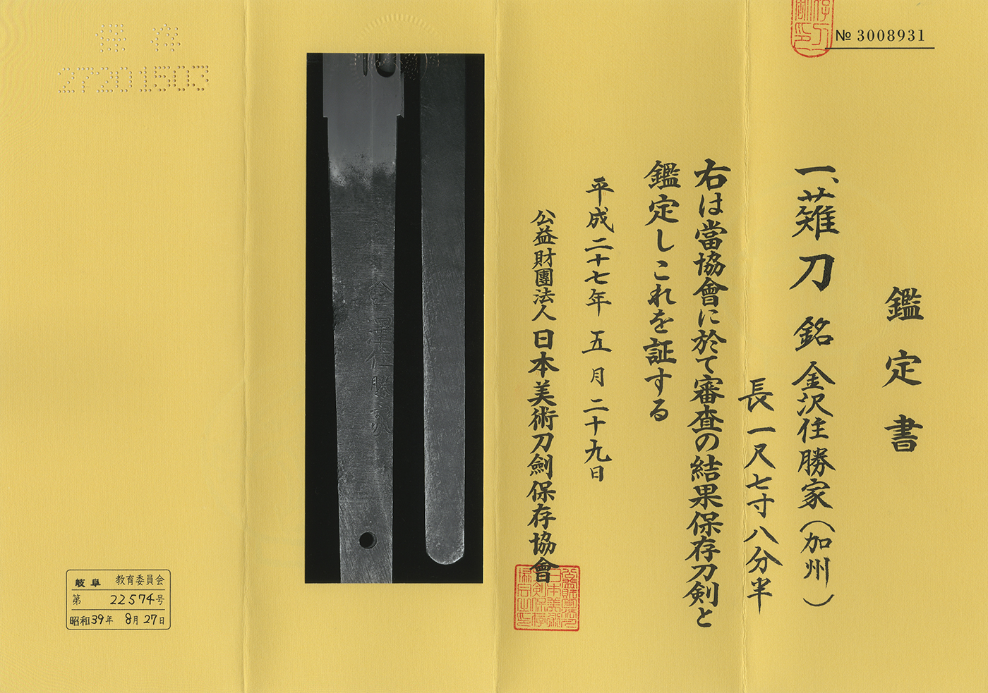 Jyo saku and regular saki)This sword belongs to Jyo saku ranking.