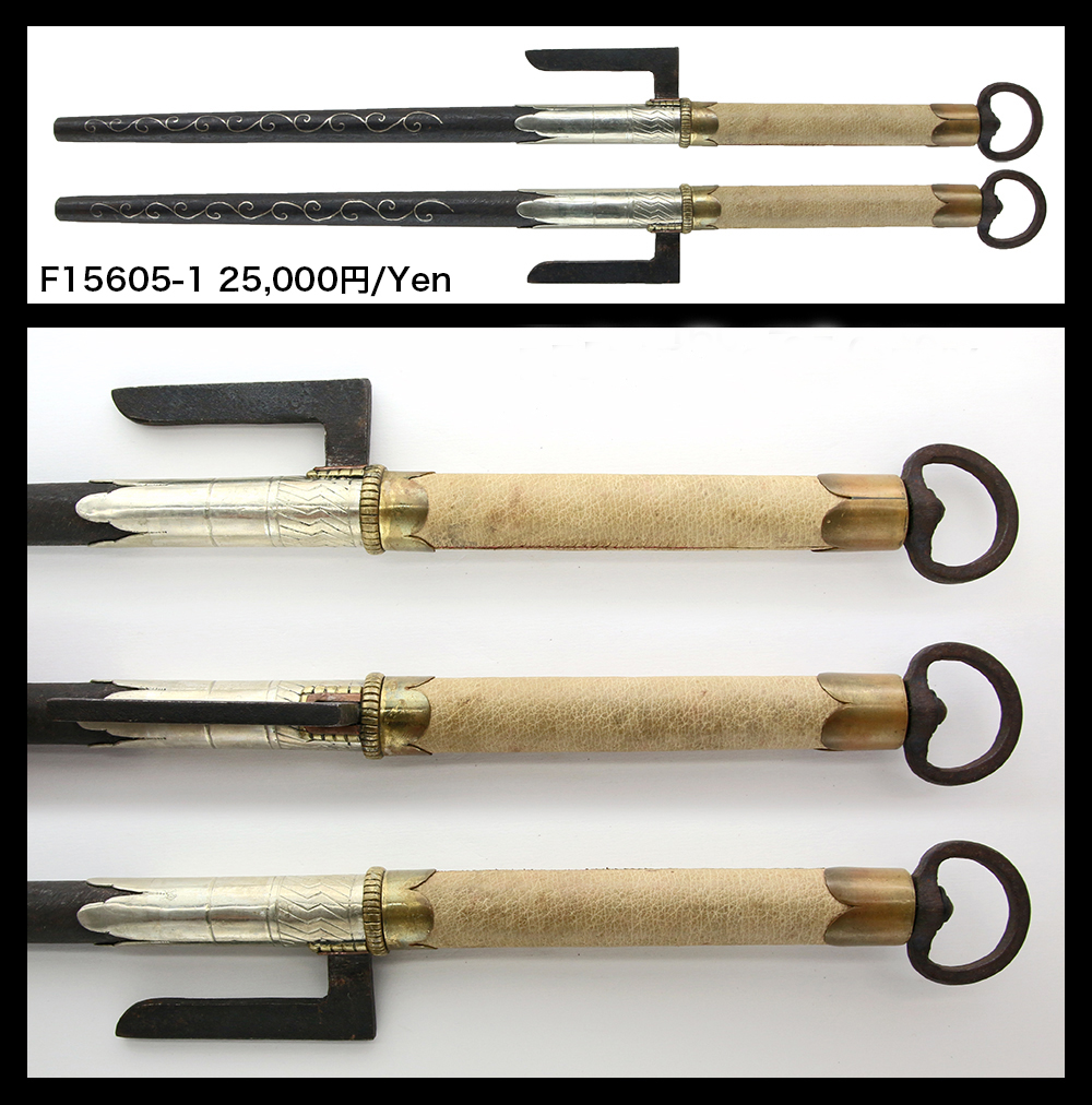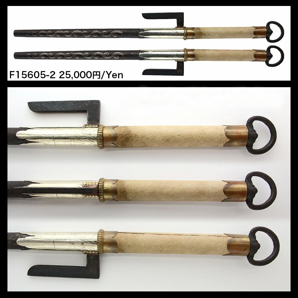 Special feature : There is fine silver habaki with karakusa pattern engraved on the Boshin(the body of the jyutte). The tsuka is made of skin.