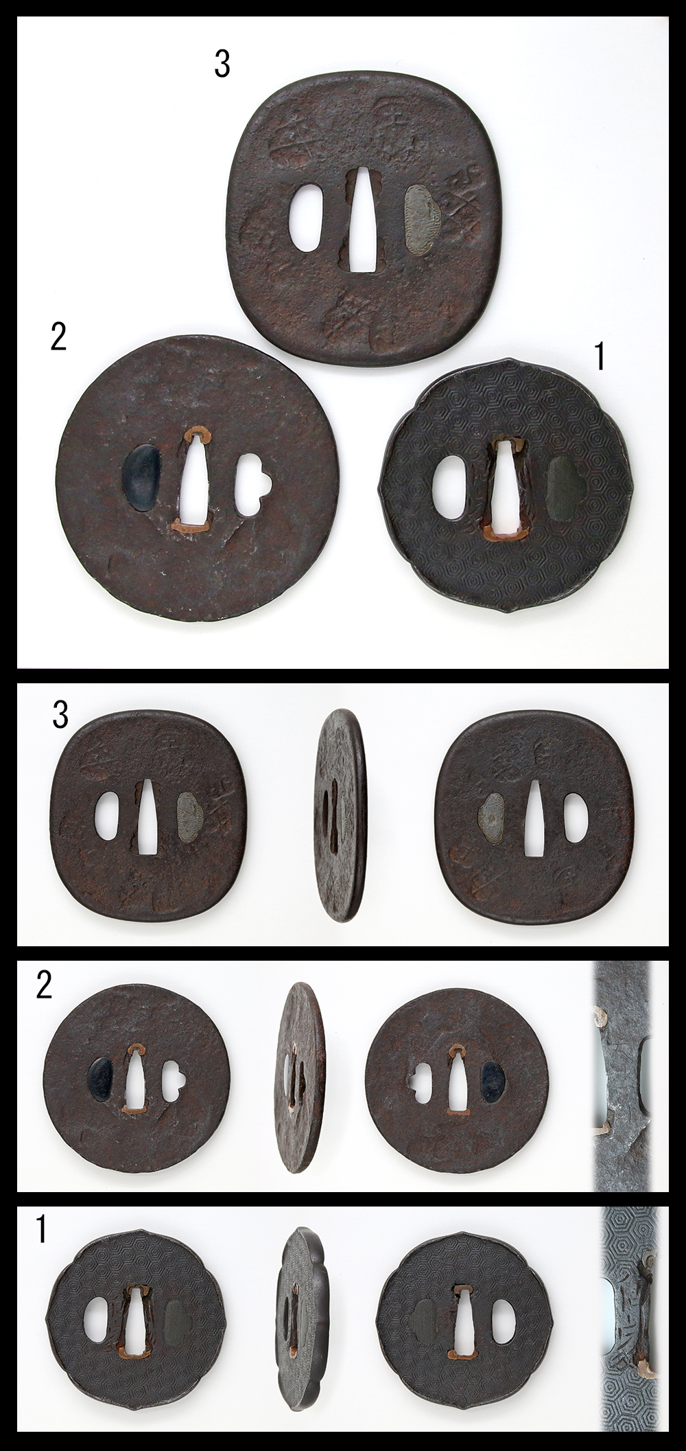 Special feature:Mokko shape iron tsuba with pattern engraved.