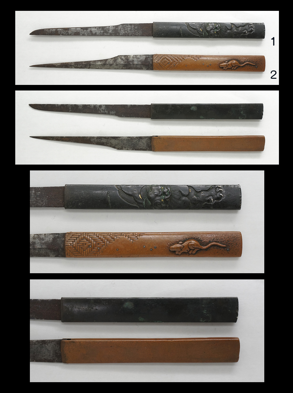 Kozuka Kogatan#1, Kozuka: on the Shakudo, Shishi dog is engraved.Kozuka Kogatan#2, Kozuka: on the copper, mouse is engraved.