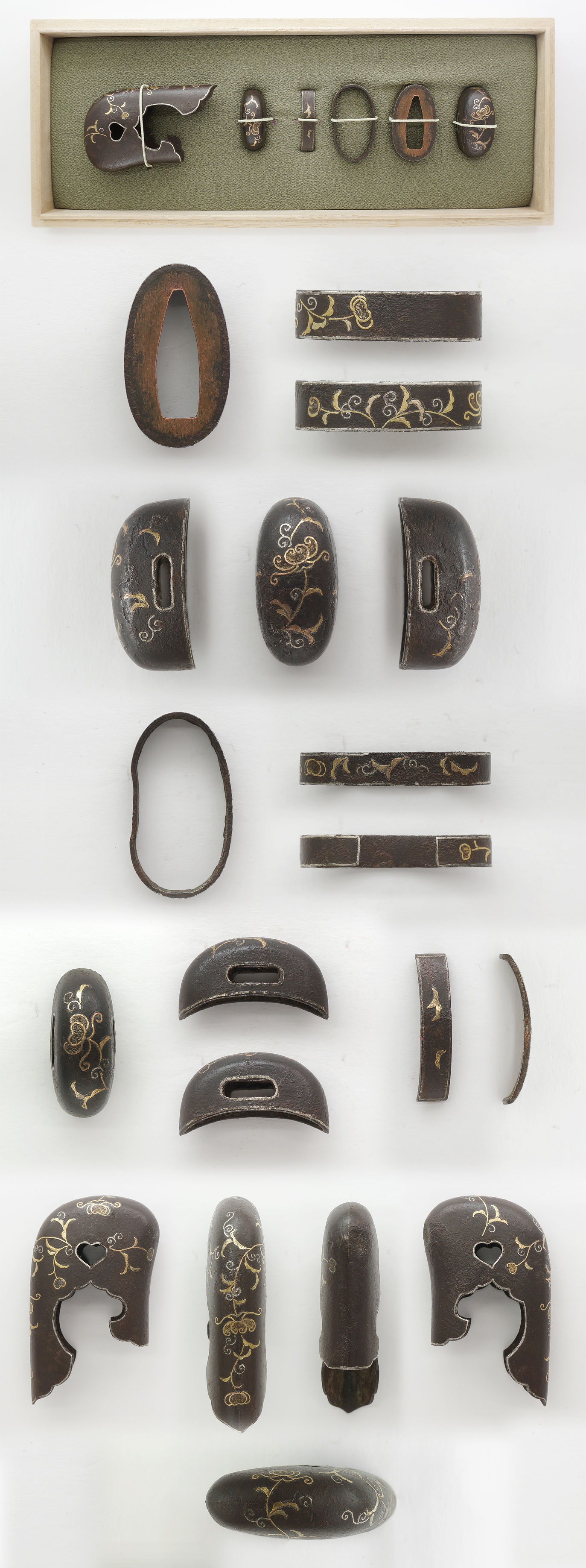 Set of Tosogu : Fuchi Kashira, Koikuchi, Kawaragane, Kurigata, Kojiri