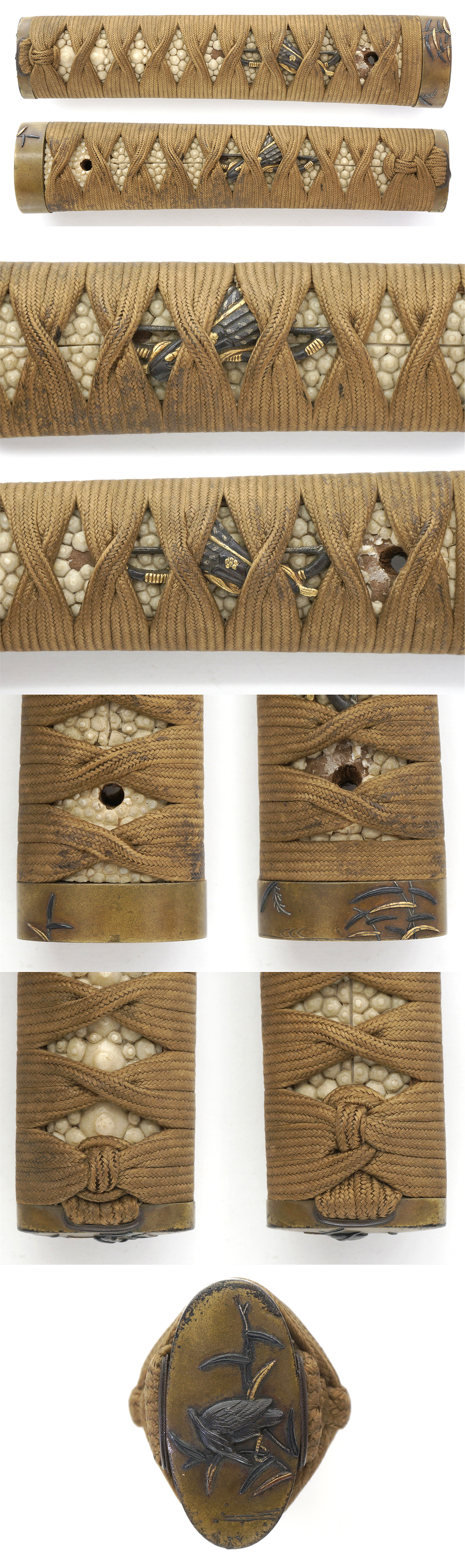 Fuchikashira : Brass, bird and water grass are engraved with gold and Shakudo color.